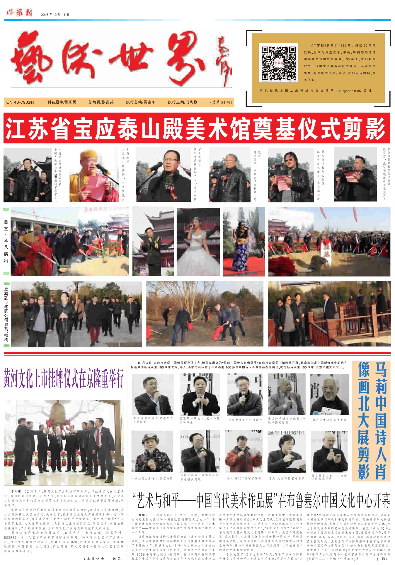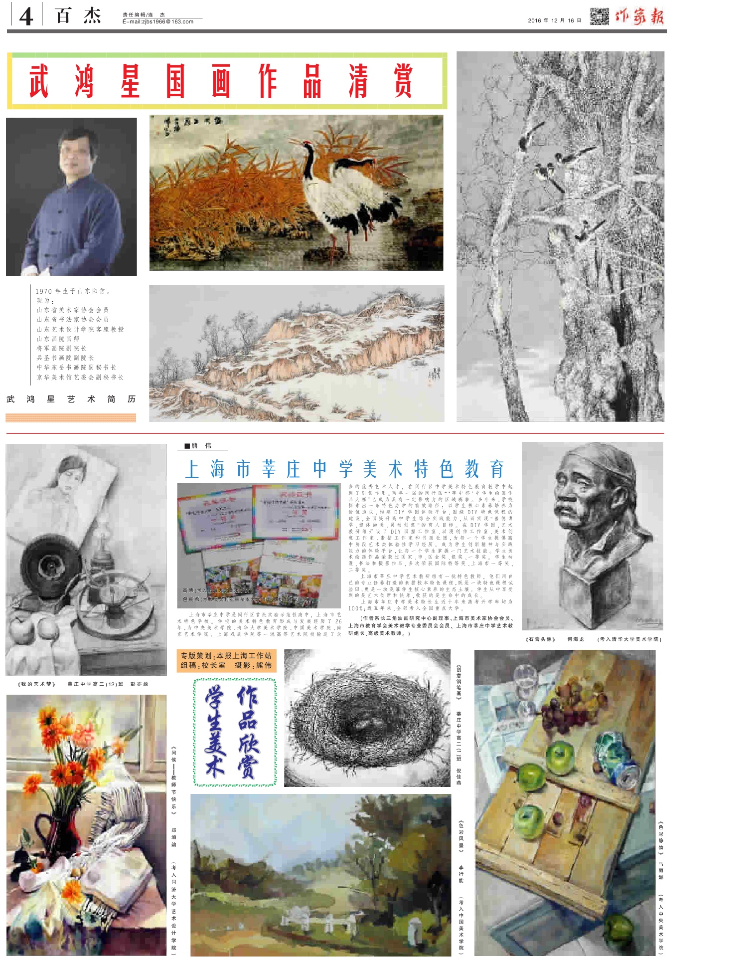 2016年12月16日《作家報》專刊《藝術世界》 2016-12-23 未知國際華文作家網 核心提示:2016年12月16日《作家報》專刊《藝術世界》 免責聲明:文章內容不代表華文作家網_作家報立場,華文作家網_作家報不對其內容的真實性、完整性、準確性給予任何擔保、暗示和承諾,僅供讀者參考,文章版權歸原作者所有。如本文內容影響到您的合法權益(內容、圖片等),請及時聯系華文作家網_作家報,我們會及時刪除處理。