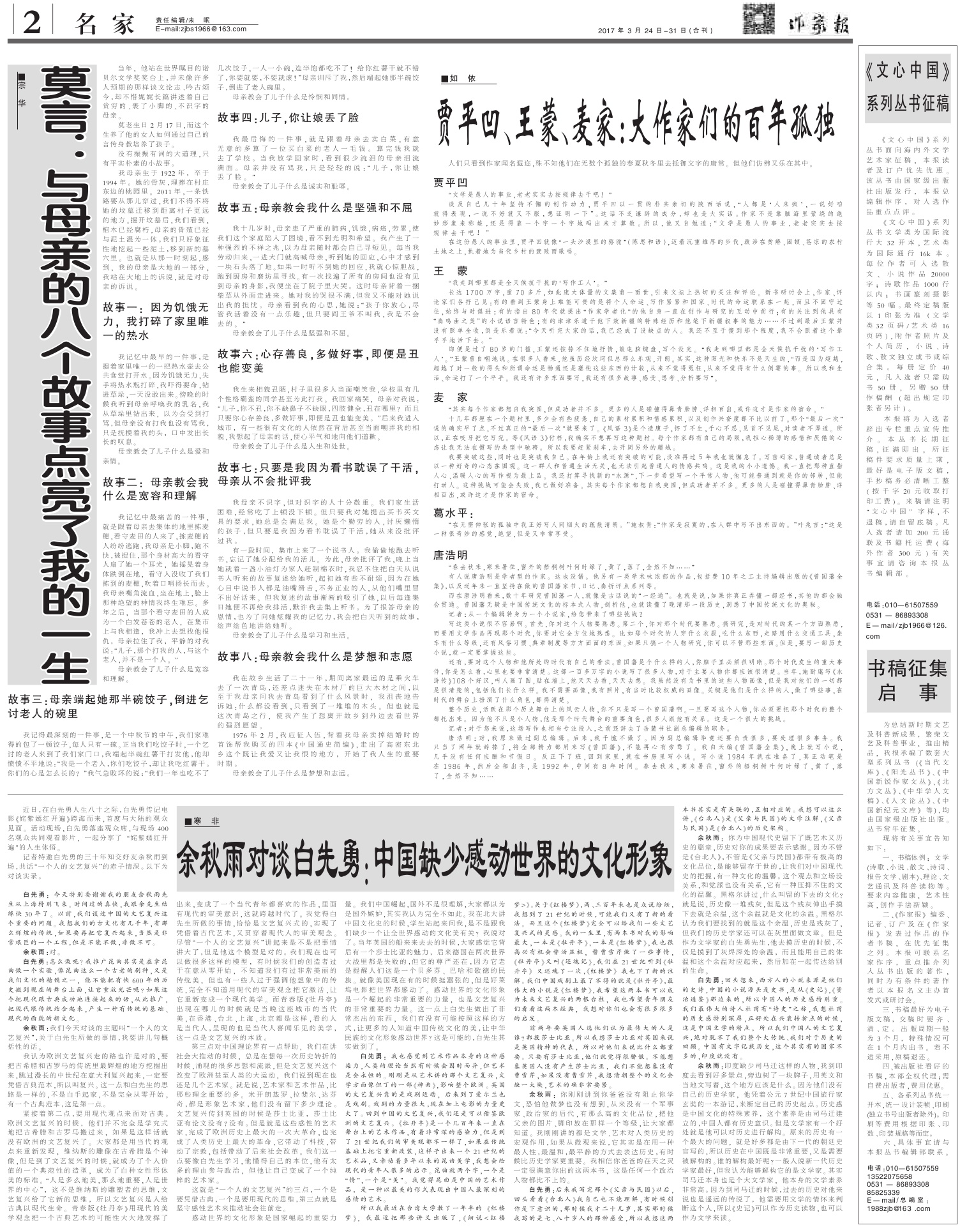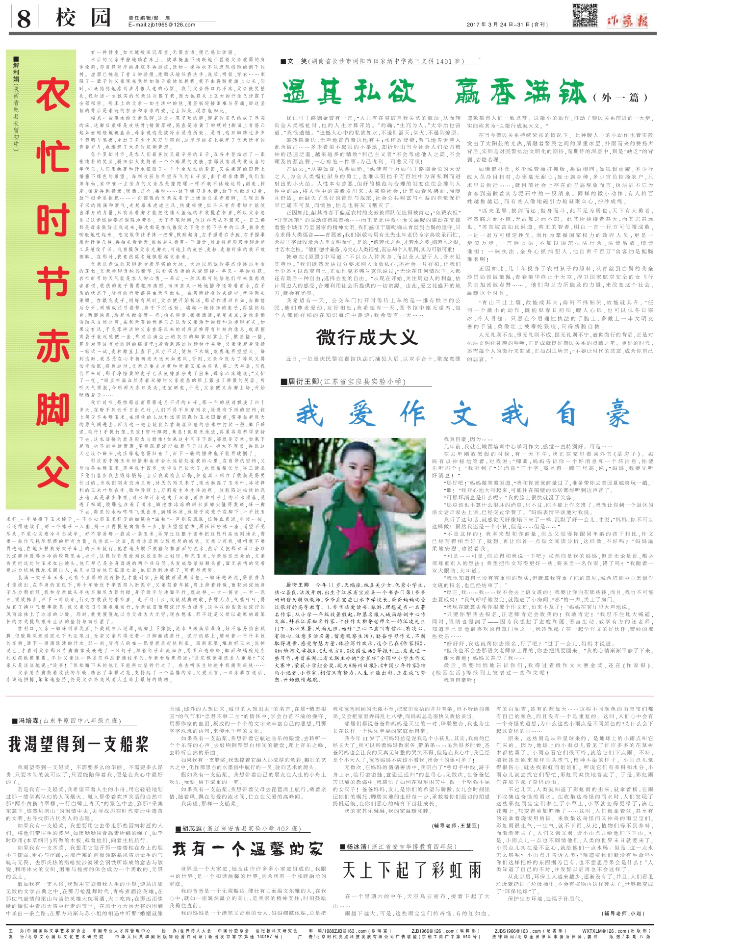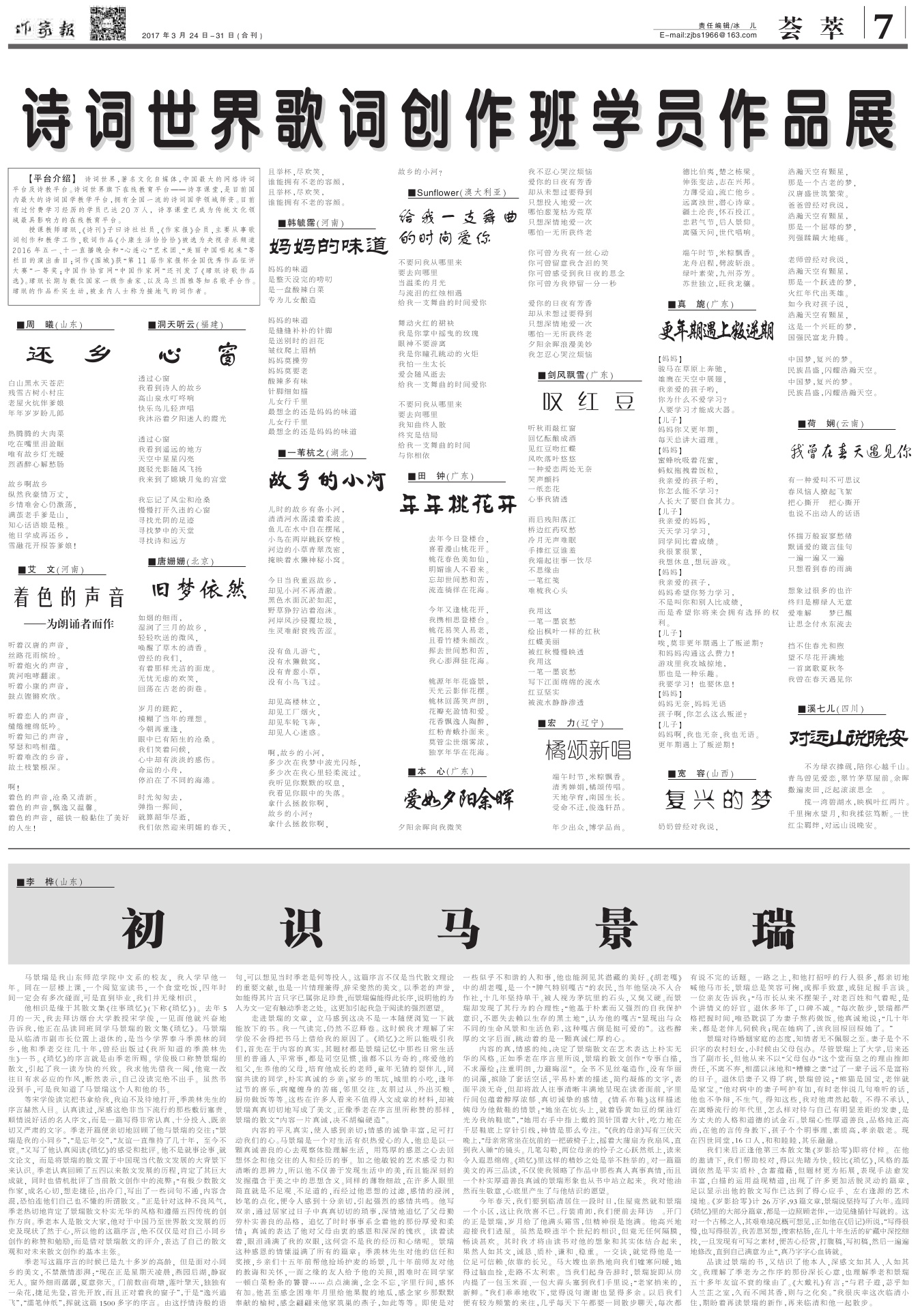 2017年3月24日-31日合刊,南昌筆會剪影專刊 2017-04-05 作家報國際華文作家網(wǎng) 核心提示:2017年3月24日-31日合刊,南昌筆會剪影專刊 免責(zé)聲明:文章內(nèi)容不代表華文作家網(wǎng)_作家報立場,華文作家網(wǎng)_作家報不對其內(nèi)容的真實性、完整性、準確性給予任何擔保、暗示和承諾,僅供讀者參考,文章版權(quán)歸原作者所有。如本文內(nèi)容影響到您的合法權(quán)益(內(nèi)容、圖片等),請及時聯(lián)系華文作家網(wǎng)_作家報,我們會及時刪除處理。