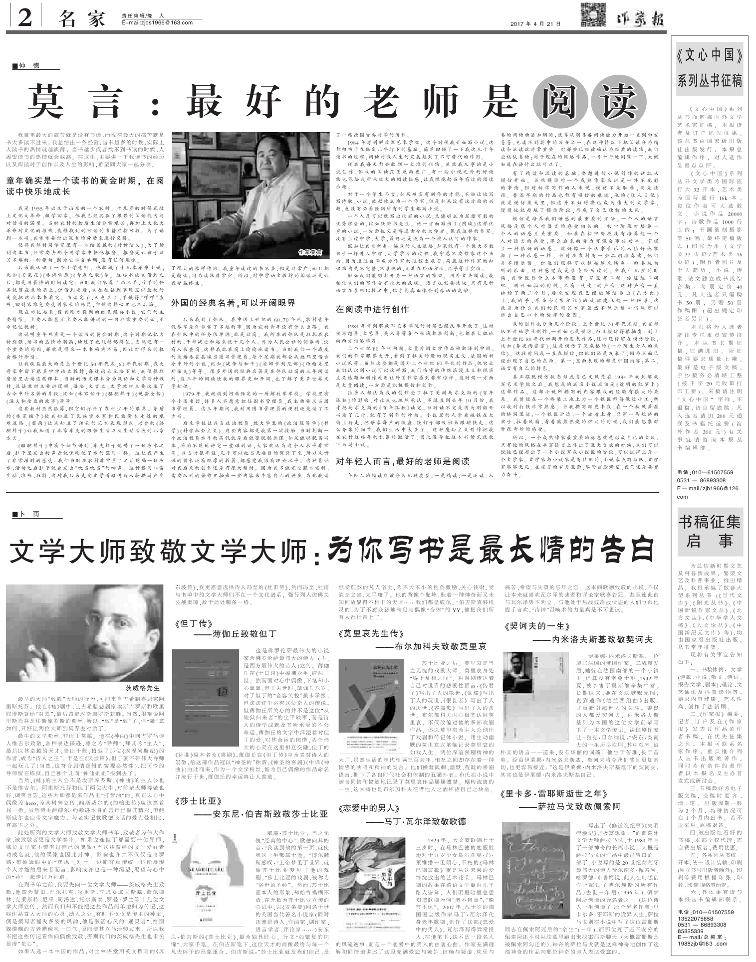 補發(fā)4月21日報刊版樣。第22個世界讀書日來臨之際,編選了一組與“閱讀”相關(guān)的文章——為自己而讀,為他人而作,在文字的世界里徜徉是如此美好!三版和四版文海擷英,精彩紛呈,給大家?guī)ゲ煌拈喿x體驗。