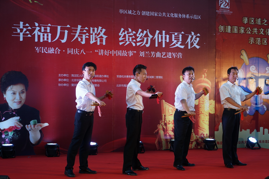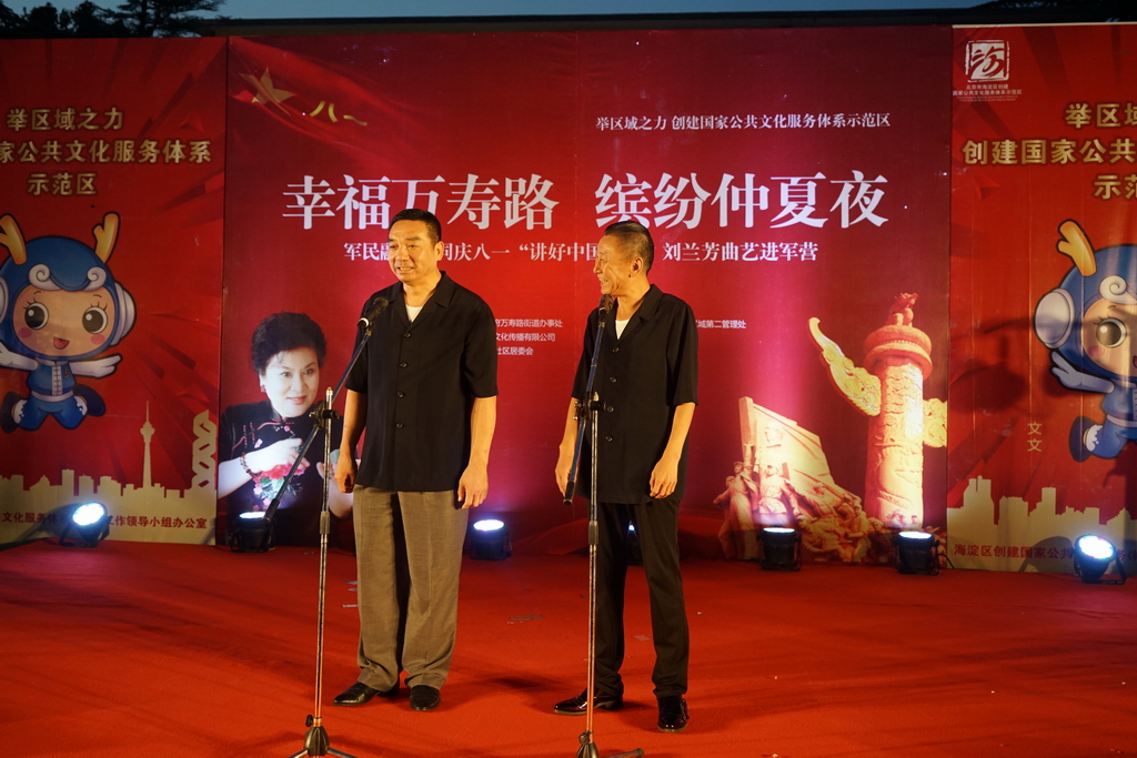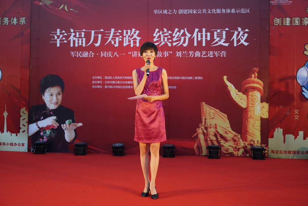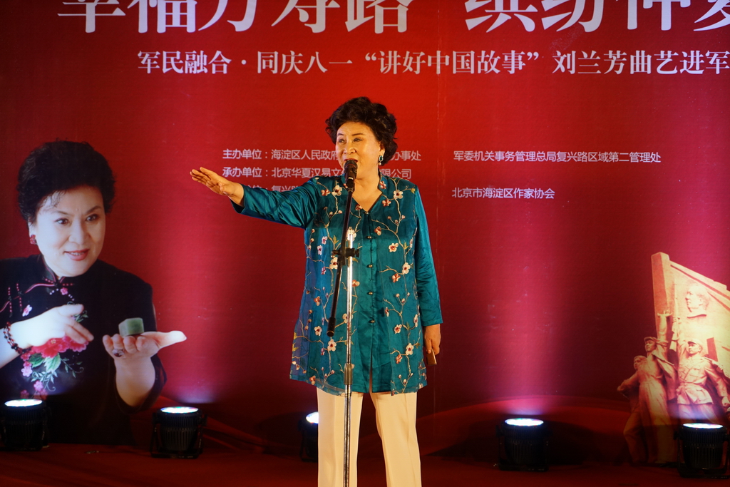 2017年是中國(guó)人民解放軍建軍90周年,7月30日晚,“軍民融合 同慶八一,講好中國(guó)故事:劉蘭芳曲藝進(jìn)軍營(yíng)”活動(dòng)在京舉行。中國(guó)文聯(lián)副主席、中國(guó)曲藝家協(xié)會(huì)名譽(yù)主席、著名評(píng)書(shū)表演藝術(shù)家劉蘭芳與眾曲藝名家一起走入萬(wàn)壽路街道,軍民共慶八一建軍節(jié),為廣大駐地官兵和社區(qū)居民獻(xiàn)上了精彩紛呈的表演。這次活動(dòng)由海淀區(qū)萬(wàn)壽路街道辦事處主辦,北京華夏漢易文化傳播有限公司、北京市海淀區(qū)作家協(xié)會(huì)承辦。
