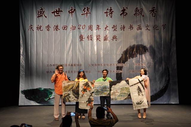 獲獎(jiǎng)藝術(shù)家向頒獎(jiǎng)盛典組委會(huì)贈(zèng)送國畫墨寶(部分)、表達(dá)對(duì)祖國和香港特區(qū)的深情厚愛,誠摯祝愿。