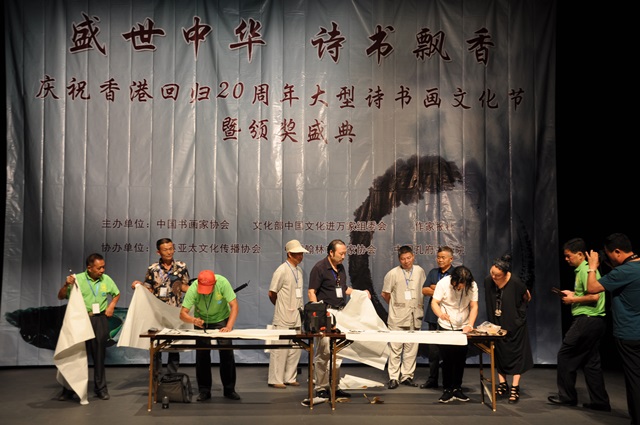 獲獎(jiǎng)藝術(shù)家向頒獎(jiǎng)盛典組委會(huì)贈(zèng)送書法墨寶(部分),為祖國和香港特區(qū)的發(fā)展送上深情祝福