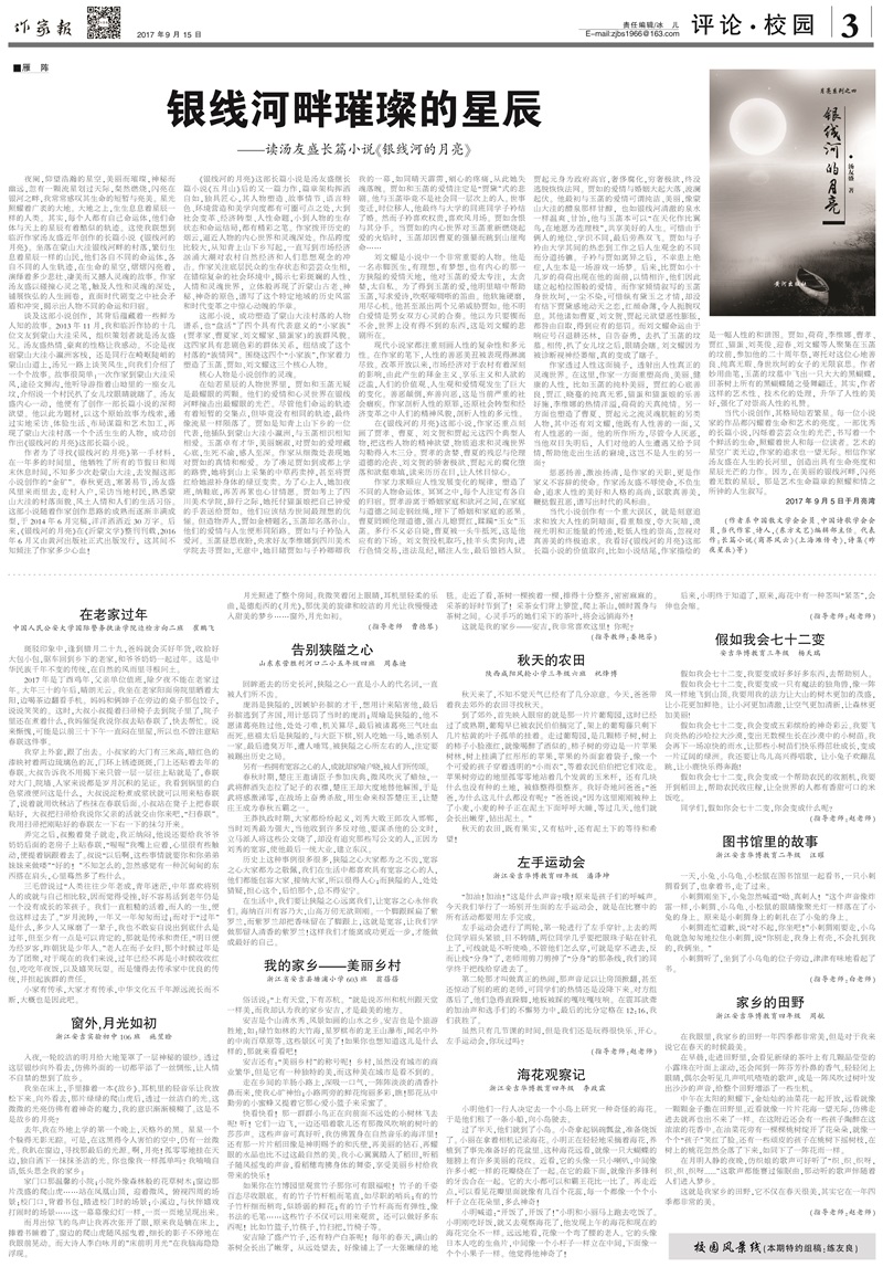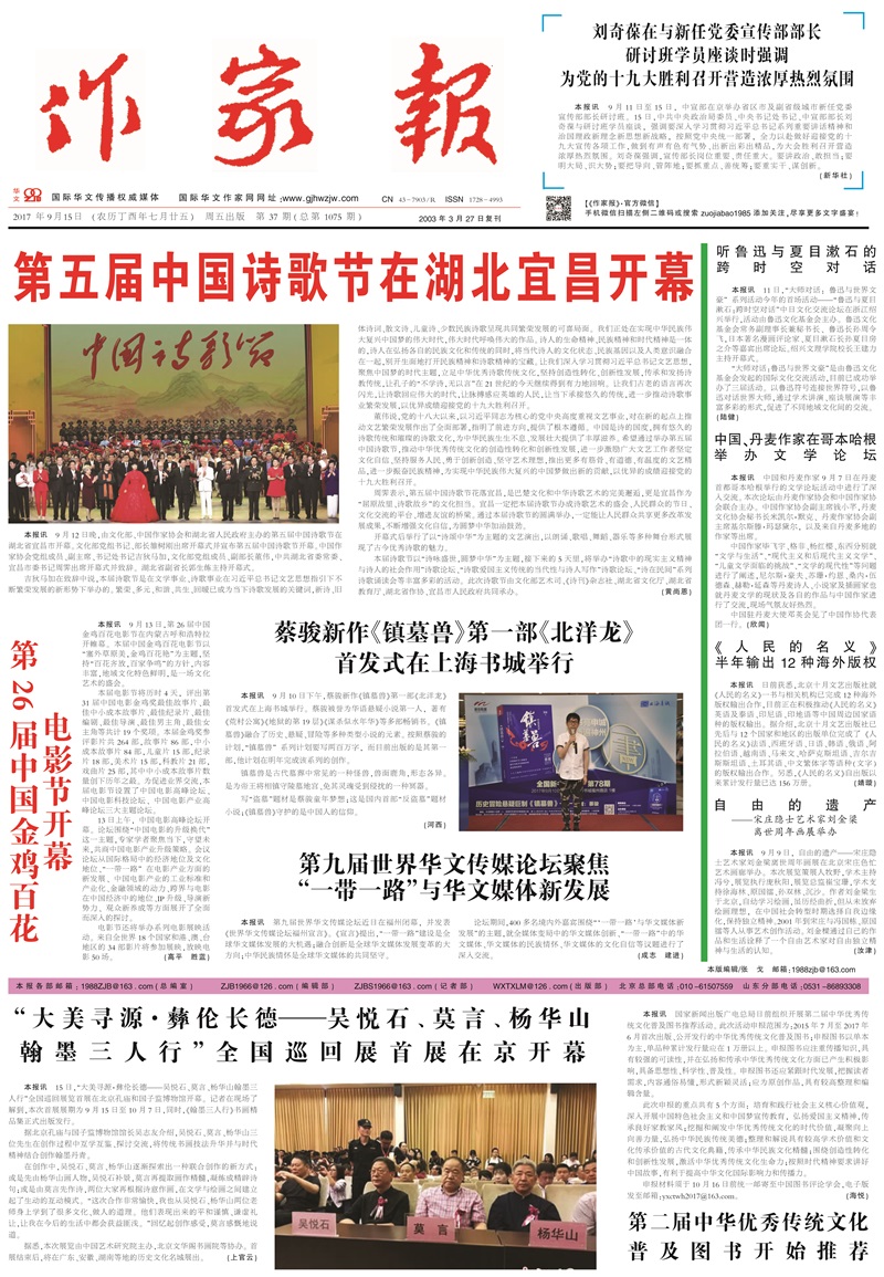 核心提示:《作家報(bào)》2017.9.18第37期(總第1075期)一版《新聞資訊》二版《擷英》三版《評論 校園》四版《看臺(tái)》