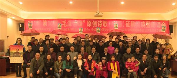 本報訊 2017年12月23日,在中國人民偉大領(lǐng)袖毛澤東誕辰124周年前夕,由中國蕭軍研究會率華語紅色詩歌促進會、中紅網(wǎng) 、中國夢文學(xué)網(wǎng)、貴州作家網(wǎng)、中華國魂編委會、北京魯煤詩文研究會、 北京蔡詩華兄妹四詩人創(chuàng)研會組織的第十屆“毛澤東頌”原創(chuàng)詩書畫征稿評獎揭曉暨朗誦會在北京中礎(chǔ)賓館舉行。