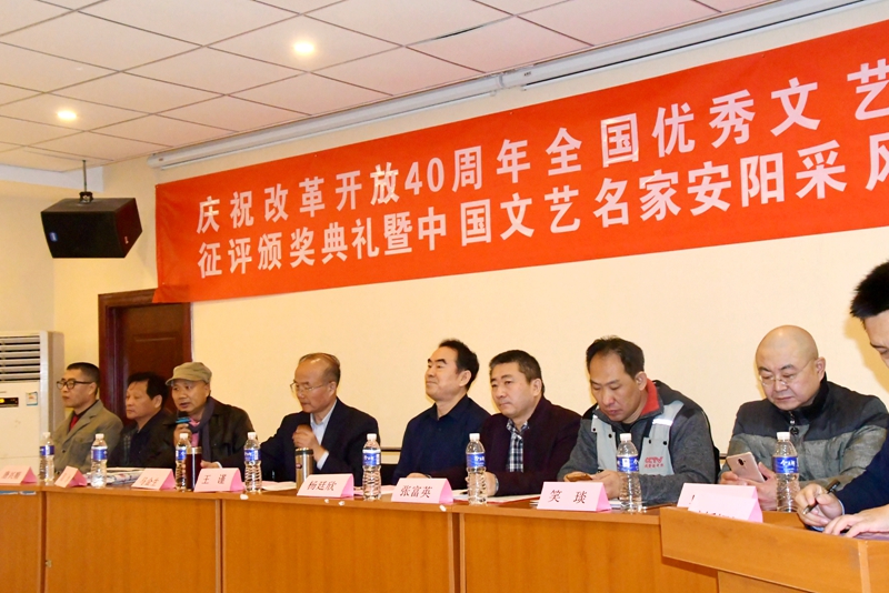 本網訊 在舉國歡慶祖國改革開放40周年的大好形勢下,由中國大眾文學學會、文化部《中華英才》雜志社、CCTV我愛你中華網絡電視頻道《詩畫中國》欄目組、《作家報》等聯合主辦,中國文化進萬家工作委員會、河南省安陽市作家協會、安陽市文峰區美術家協會等聯合協辦的慶祝改革開放40周年全國優秀文藝作品征評頒獎典禮·第七屆中國作家新創作論壇暨中國文藝名家安陽采風筆會,于11月30日至12月3日在河南省安陽市瑞程連鎖酒店隆重舉辦。