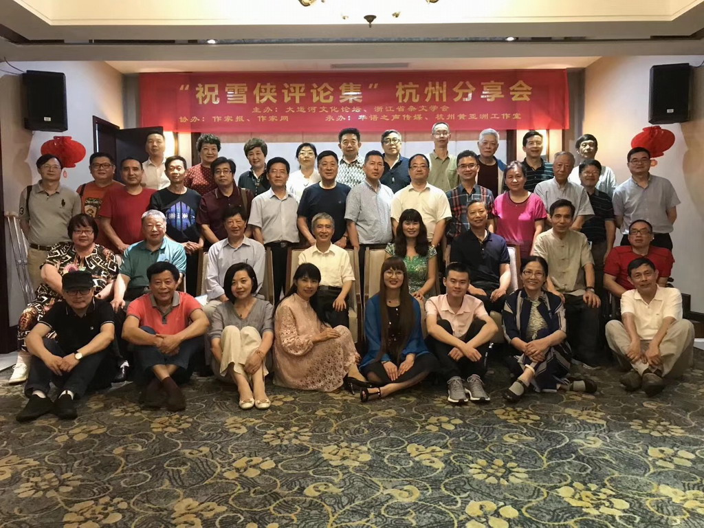 我和雪俠是在杭州G20,是在亞洲老師詩歌朗誦會《聽我歌唱杭州》相識,我是以接待的身份,我們一見如故。今天拿到《祝雪俠評論集》這本紙質書,我心里沉甸甸的,因聽了在場各位大家對雪俠的肯定和支持,讓人非常興奮。如果要對雪俠說點什么,我心目中的雪俠有三好,四熱,三好:人品好,文風好,長像好,四熱:熱愛工作,熱愛文學,熱愛生活,重點是熱愛人,文人。
