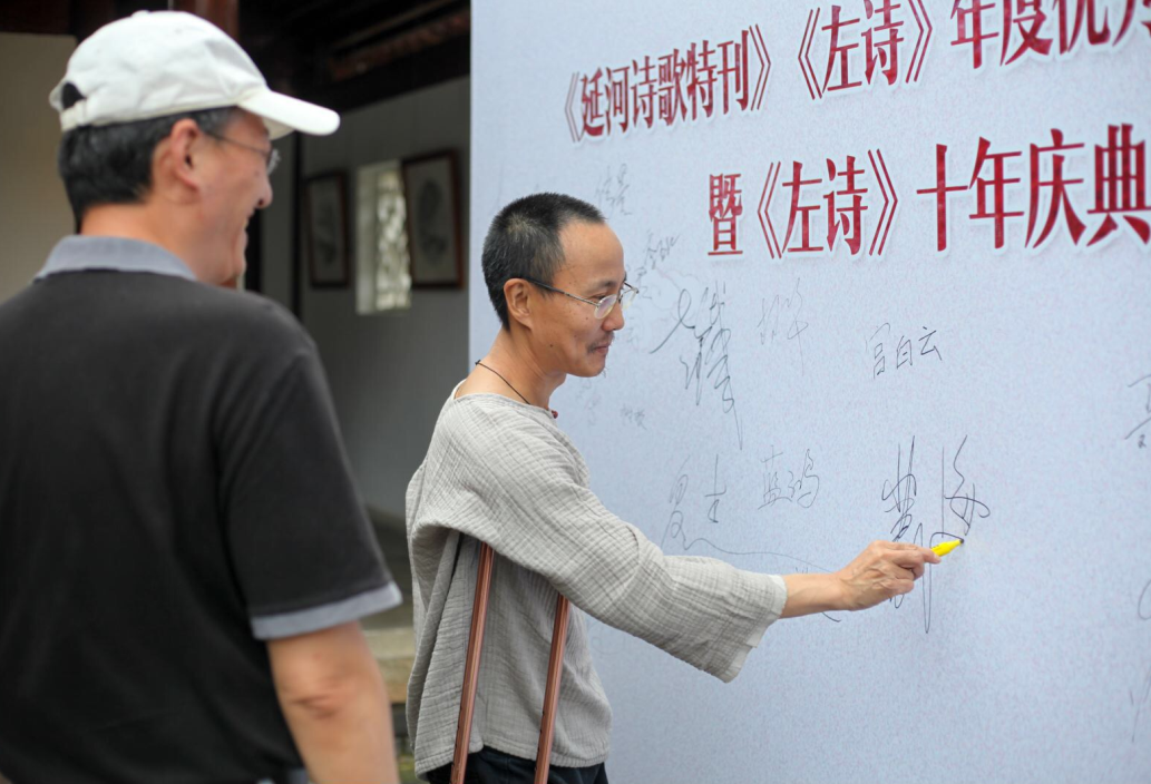 《左詩(shī)》于2019年7月19日—21日,在蘇州昆山錦溪禪院樊登書店隆重舉行了《延河詩(shī)歌特刊》《左詩(shī)》年度優(yōu)秀詩(shī)歌頒獎(jiǎng)暨《左詩(shī)》十周年慶典活動(dòng)。本次活動(dòng)邀請(qǐng)了《作家》主編宗仁發(fā)、《十月》編輯谷禾、《詩(shī)歌月刊》編輯部主任黃玲君、《詩(shī)刊》編輯聶權(quán)、蘇州作協(xié)副主席小海、詩(shī)人畫家車前子、詩(shī)人老鐵、蘇野,全書文,琴匣、雪鷹、宮白云、木耳等,以及昆山本地的“野馬渡詩(shī)歌雅集”“夏季風(fēng)詩(shī)歌沙龍”的部分成員。來(lái)自全國(guó)各地的40余位詩(shī)人集聚一堂,為《左詩(shī)》十年慶生,并對(duì)《左詩(shī)》主編冷眉語(yǔ)為詩(shī)歌作出的貢獻(xiàn)作出高度評(píng)價(jià)與肯定,大家一致祝愿《左詩(shī)》能越辦越好,也希望更多地人支持《左詩(shī)》、認(rèn)識(shí)《左詩(shī)》,為中國(guó)詩(shī)歌的發(fā)展、為詩(shī)歌民刊的繁榮盡綿薄之力。