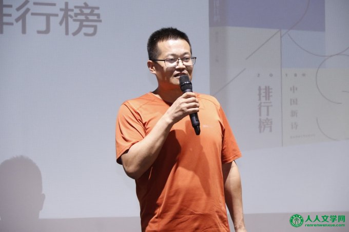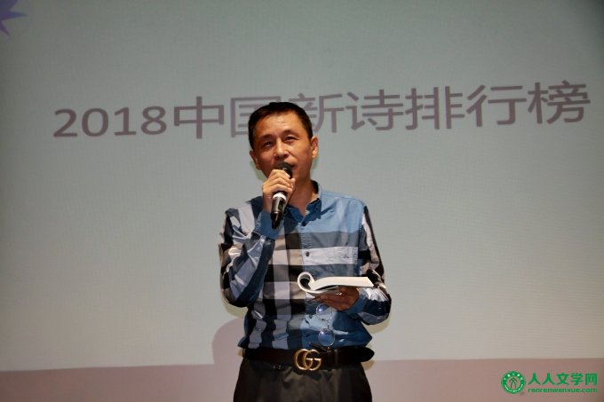 隨后,譚五昌主編上臺發言,他首先感謝各位詩人、藝術家朋友以及詩歌愛好者能夠像往常一樣,犧牲自己周末休息的時間前來參加2018年度中國新詩排行榜發布會,看到大家一如既往地把一年一度的中國新詩排行榜發布會當成一個盛大的精神節日,他感覺無比欣慰,他表示,這是他自己連續八年主編《中國新詩排行榜》的巨大精神動力。譚五昌主編對自己的詩歌編選工作多年來獲得海內外廣大詩人朋友們的大力支持深表謝意,他特別強調,21世紀中國文化的復興,需要詩歌與詩人在其中扮演著極為光榮而重要的角色,他自己很高興能夠為海內外這么多有才華、有理想、有抱負的詩人做一些服務性工作,這個工作雖然非常辛苦,但意義重大,價值無限。
