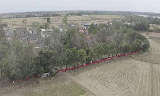 天門(mén)黃氏宗親聯(lián)誼會(huì)副會(huì)長(zhǎng)黃中華帶領(lǐng)大家開(kāi)始走龍堤