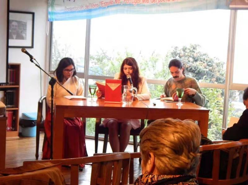 《我的西班牙,我的葡萄牙》西班牙語(yǔ)譯者何塞菲娜•特納坎、阿美利加•梅里諾、菲利佩•波夫萊特、瓦爾帕萊索,聶魯達(dá)詩(shī)歌協(xié)會(huì)負(fù)責(zé)人塞爾吉奧•穆略斯,以及智利的詩(shī)歌愛(ài)好者們(大學(xué)老師、文學(xué)系學(xué)生、音樂(lè)人等)參加了研討會(huì)。