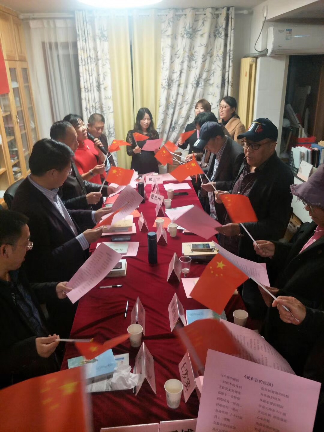 段春梅在答謝中說:感受到了和諧融融的文學交流氛圍,對首長方家們的評析、指正、厚愛和期許,一定牢記,感激之情溢于言表。一定在做好本職工作之余,用心體悟,寫出更多更好的詩句,不負眾望!隨后她即興朗誦了自己創作的詩歌《祖國,我為你唱支歌》,展露了她的赤子之情。四位親友團也滿含深情的朗誦了段春梅的詩作《幸福的味道》,整個文心書院洋溢著歡樂、幸福的味道。座談會在與會嘉賓合唱《我和我的祖國》的美好旋律中圓滿結束!