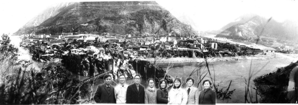 上世紀七十年代石棉縣縣城全景(人像照片攝于1990年前,左2為作者)