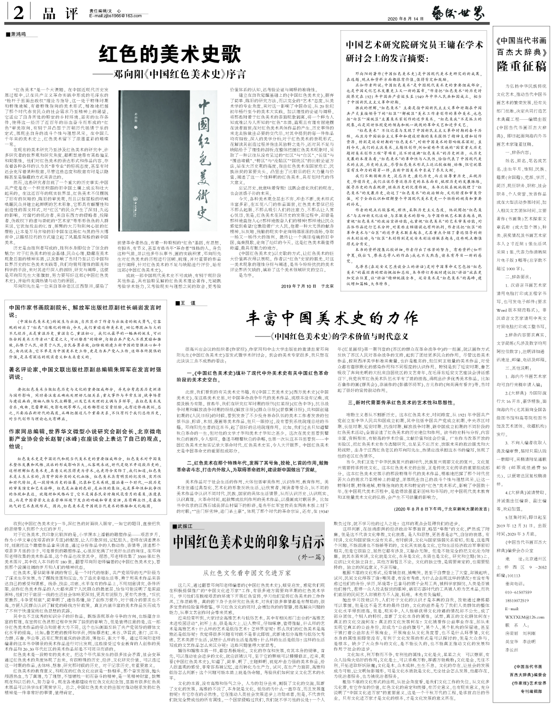 2020.8.14總第103期 2020-08-29 作家報華文作家網(wǎng),作家報 核心提示:鄧向陽《中國紅色美術史》首發(fā)式暨學術研討會;推介書法家張弓、書畫家王登武。 免責聲明:文章內(nèi)容不代表華文作家網(wǎng)_作家報立場,華文作家網(wǎng)_作家報不對其內(nèi)容的真實性、完整性、準確性給予任何擔保、暗示和承諾,僅供讀者參考,文章版權歸原作者所有。如本文內(nèi)容影響到您的合法權益(內(nèi)容、圖片等),請及時聯(lián)系華文作家網(wǎng)_作家報,我們會及時刪除處理。