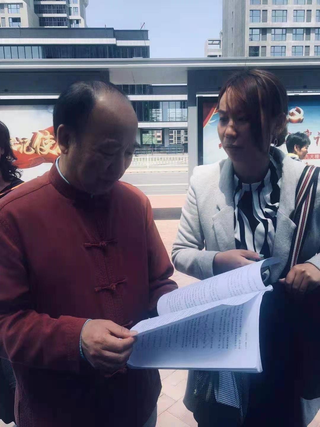 文登網(wǎng)絡新秀作家、編劇鞠夢與凌鼎年在城市書房大門口交流
