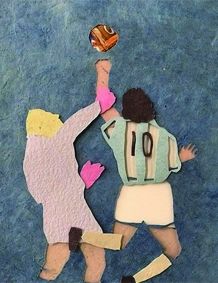不止巴西本土藝術家,各國的藝術家們也紛紛推出自己的作品。澳大利亞藝術家Nick Barclay制作的世界杯插畫,定格了世界杯賽場上的多個經典瞬間,插畫的上角標出了球員的名字、國家隊以及世界杯年份,作品包括了1966年世界杯赫斯特門線懸案、1986年世界杯馬拉多納上帝之手等;美國藝術家凱斯·杰尼根制作了一組超現實版球員畫像,罰失點球的巴喬和德羅巴、齊達內頭頂馬特拉齊、C羅、皮爾洛一一在紙上活靈活現……裝置、沙雕、海報、紙雕、涂鴉、攝影等,花樣繁多的形式,傳遞著有關世界杯的藝術表達。世界杯也不止是64場足球比賽,而是被賦予更加多元的文化價值和藝術氣息。
