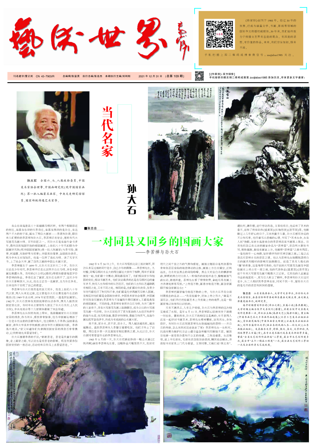 2021.12.31(總第109期) 2022-02-03 作家報冰兒 免責(zé)聲明:文章內(nèi)容不代表華文作家網(wǎng)_作家報立場,華文作家網(wǎng)_作家報不對其內(nèi)容的真實性、完整性、準(zhǔn)確性給予任何擔(dān)保、暗示和承諾,僅供讀者參考,文章版權(quán)歸原作者所有。如本文內(nèi)容影響到您的合法權(quán)益(內(nèi)容、圖片等),請及時聯(lián)系華文作家網(wǎng)_作家報,我們會及時刪除處理。