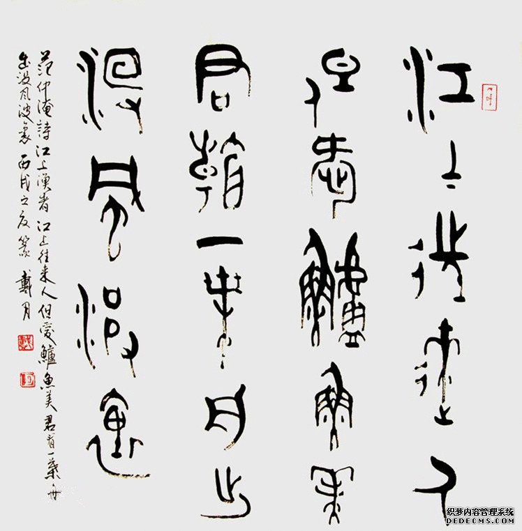 他先后出版了《金文的識認(rèn)與書寫》、《戴月說文釋字》、《金文書法疑難用字》、《戴月金文書法字帖》和《戴月書法篆刻作品集》等,在書法界引起了不小的轟動。