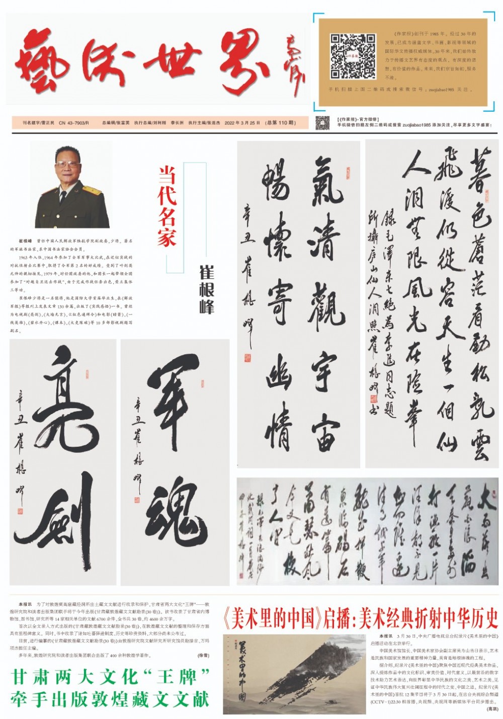 2022.3.31(總第110期) 2022-04-11 核心提示:著名書畫家著名書畫家 免責聲明:文章內(nèi)容不代表華文作家網(wǎng)_作家報立場,華文作家網(wǎng)_作家報不對其內(nèi)容的真實性、完整性、準確性給予任何擔保、暗示和承諾,僅供讀者參考,文章版權歸原作者所有。如本文內(nèi)容影響到您的合法權益(內(nèi)容、圖片等),請及時聯(lián)系華文作家網(wǎng)_作家報,我們會及時刪除處理。 標簽:崔根峰 龔光新 沈燕 黃河鯉公