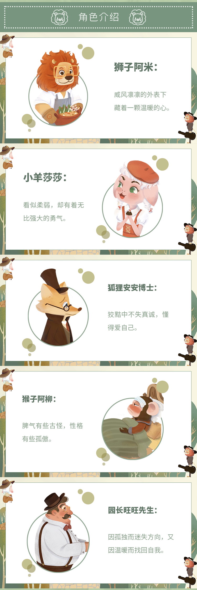 阿米是一位草原上的獅子歌王,莎莎是一位會(huì)用人類語言寫詩的羊姑娘。草原演唱會(huì)上,莎莎救了被獵人打傷的阿米。后來,他們成為朋友,一起開墾荒地,種菜,種糧食,靠辛勤勞動(dòng)在樹林里的河邊建造小木屋。他們一邊勞動(dòng),一邊唱歌寫詩,過著幸福自在的生活。不料氣候惡化,暴雨侵襲了小木屋,他們的家園被毀。為了生存,他們?cè)诤偘舶膊┦恳]下來到城里的寵物樂園打工,日漸成為有名的動(dòng)物明星,靠精彩的演出為園長(zhǎng)旺旺先生賺錢。在寵物樂園打工期間,善良的阿米認(rèn)癡呆的梨花老人為娘,又救了衰老的猴子先生的命,還為山區(qū)的孩子免費(fèi)演出。在阿米的影響下,園長(zhǎng)旺旺先生重新找回了內(nèi)心的愛,他的價(jià)值觀發(fā)生了改變。以前他只把寵物樂園當(dāng)作謀利的工具,而現(xiàn)在他轉(zhuǎn)變了想法,開始做社會(huì)公益活動(dòng)。旺旺先生感受到了阿米、莎莎的愛,也逐漸學(xué)會(huì)付出愛。愛會(huì)驅(qū)散我們心中的陰霾,讓人感受到世界的溫暖與包容。