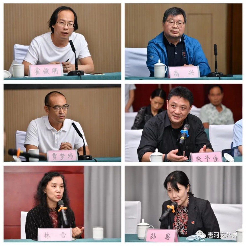 縣委常委、宣傳部長李中陽主持會議。他首先代表中共唐河縣委、唐河縣人民政府向蒞臨這次懇談會的各位嘉賓、各位領導表示熱烈的歡迎和衷心的感謝!各位詩界巨擘,不遠千里從祖國的四面八方云集唐河,共襄第七屆全國詩歌刊物主編懇談會這一盛事,共敘新時代下詩歌的鄉土根脈與山鄉巨變的責任和傳承,共同見證了一次詩和遠方完美結合的盛舉,這是唐河148萬人民翹首以盼的一件喜事、幸事,更是全縣政治文化生活中的一件大事、盛事,是一次走進唐河,了解唐河,抒寫唐河千載難逢的好時機。南陽市委常委、宣傳部長馬冰在懇談會上發表了熱情洋溢的致辭。他指出:南陽始終深入學習貫徹習近平總書記在文藝工作座談會重要講話精神,牢記囑托,感恩奮進,踔厲奮發,砥礪前行。聚焦脫貧攻堅、鄉村振興、農業農村現代化建設背后的深刻變革和偉大實踐,開展了一系列主題文藝活動,創作了一大批文藝精品,以藝術的形式生動展示了新時代鄉土根脈和山鄉巨變的恢弘場景、巨大成就,更好滿足人民群眾對美好生活的文化需求,為加快建設河南省域副中心城市提供了豐厚的精神食糧、作出了積極貢獻。縣委書記賀迎對各位主編和詩人的到來表示熱烈歡迎,他指出:唐河縣委、縣政府高度重視文化文藝工作,召開了高規格的文化文藝座談會,成立了文化獎勵基金,實施了“漫話唐河”“美韻唐河”“史韻唐河”“唐河形象歌曲”征集等系列工程,建成了唐州大劇院、文學館、圖書館、博物館、美術館、科技館、新時代文明實踐中心等一大批文化場館。希望各位主編和詩人到唐河多走走、多看看,實地感受鄉土根脈和山鄉巨變,用文學全方位全景式展現新時代農村舊貌換新顏的精神氣象。