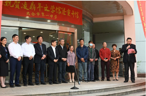 參加凌鼎年文學館開館儀式的有來自上海、蘇州、無錫等地的作家、評論家,如中國作協(xié)第九屆副主席葉辛、江蘇省作協(xié)副主席王堯、中國微型小說學會會長夏一鳴、秘書長高健、上海交通大學上海交通大學古代典籍與中國文化研究中心主任許建平教授、姚大勇副教授、北美華府華文作協(xié)第十二屆會長、美國華府《文系中華》編輯部首任總編陳小青等。太倉本地領導有太倉市政協(xié)主席趙建初,市委常委、宣傳部長、統(tǒng)戰(zhàn)部長查焱、太倉市人大副主任顧建康、宣傳部副部長沈暉、統(tǒng)戰(zhàn)部副部長王孝紅,人大原副主任袁國強、吳炯明,政協(xié)原副主席邢少蘭、朱鳳蘭、太倉市政協(xié)原秘書長陸靜波、太倉市作家協(xié)會主席龔璇、太倉民進主委王燕,與太倉市一中書記張倩、校長馮潔等近百位來賓參加了開館儀式。開館儀式由太倉市文聯(lián)主席楊喜良主持,著名作家葉辛、王堯教授致辭。葉辛、王堯、趙建初、查焱、顧建康、夏一鳴、陳小青等共同揭牌。