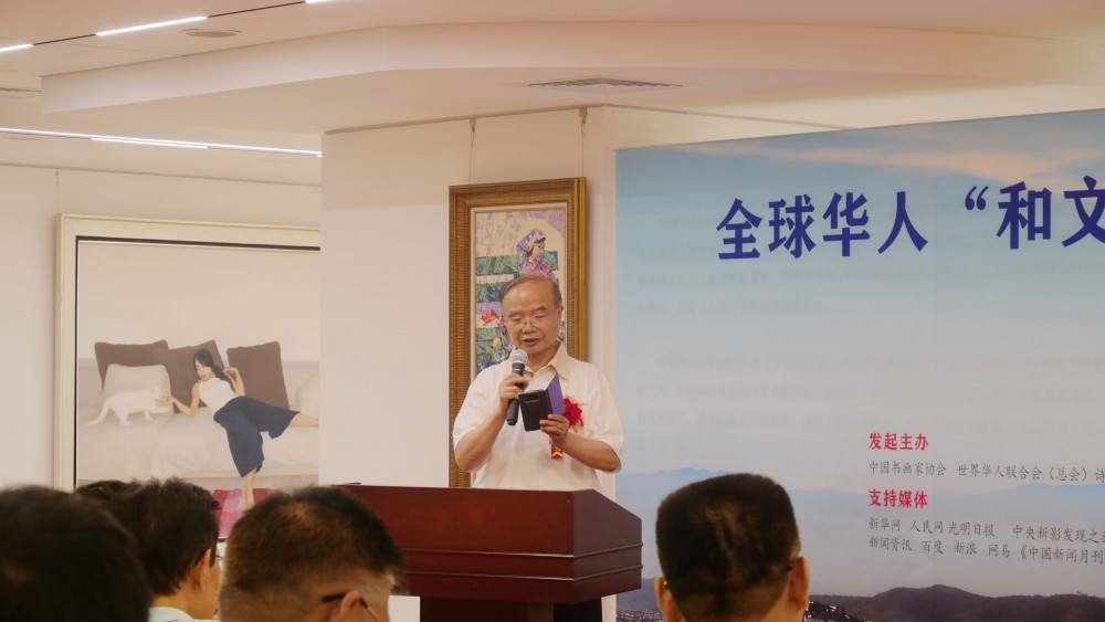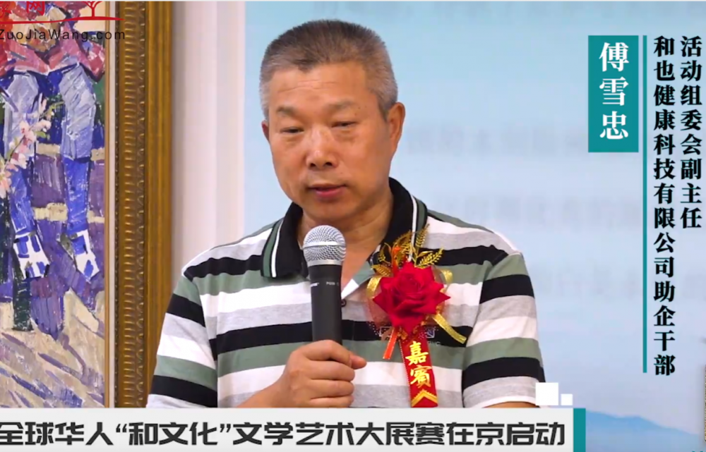 活動(dòng)總策劃、《作家報(bào)》總編輯張富英致歡迎詞,熱誠(chéng)歡迎各位嘉賓的蒞臨,感謝大家迎著酷暑來捧場(chǎng)!他在致辭中講明了策劃這次活動(dòng)的初衷:2021年與和也結(jié)緣,深深為和也人的謙和、不遺余力以科技的力量帶給人們健康的精神追求所打動(dòng),從此深深被和文化所吸引,越研學(xué)越熱愛,切實(shí)領(lǐng)悟到:人身體的健康態(tài)、身心的健康態(tài)即和。并深刻認(rèn)識(shí)到“和文化”在中國(guó)有著悠久的傳承,幾千年的薪火相傳中,作為華夏民族核心價(jià)值觀的中庸之道,托舉中華民族鑄就了五千年輝煌,“道生一,一生二,二生三,三生萬物。萬物負(fù)陰而抱陽(yáng) 沖氣以為和”、“天人合一”、“和合相生”,儒釋道和合為中華文明之內(nèi)核之根基。先賢的智慧福佑中華,“中也者,天下之大本也;和也者,天下之達(dá)道也”,和也達(dá)道,乃人類福祉!從而倍增“文化自信”。“文化自信是一個(gè)國(guó)家、一個(gè)民族發(fā)展中更基本、更深沉、更持久的力量。”習(xí)近平總書記多次點(diǎn)明了文化振興的重要性。在和也發(fā)起弘揚(yáng)和文化大展活動(dòng),實(shí)至名歸。充分體現(xiàn)了和也人的高瞻遠(yuǎn)矚與遠(yuǎn)見卓識(shí)。他強(qiáng)調(diào)這是一項(xiàng)系列過程,是一項(xiàng)偉大事業(yè),祝愿大展在各方齊心努力下取得圓滿成功!希望作家朋友們才情涌動(dòng)創(chuàng)作出優(yōu)秀的和文化美文,希望更多書畫藝術(shù)家揮毫潑墨踴躍投稿摘取大獎(jiǎng),希望媒體同仁們傾情報(bào)道發(fā)布助推!最后,祝愿大家身泰體健、和和美美,祝福和也蒸蒸日上,再創(chuàng)輝煌!