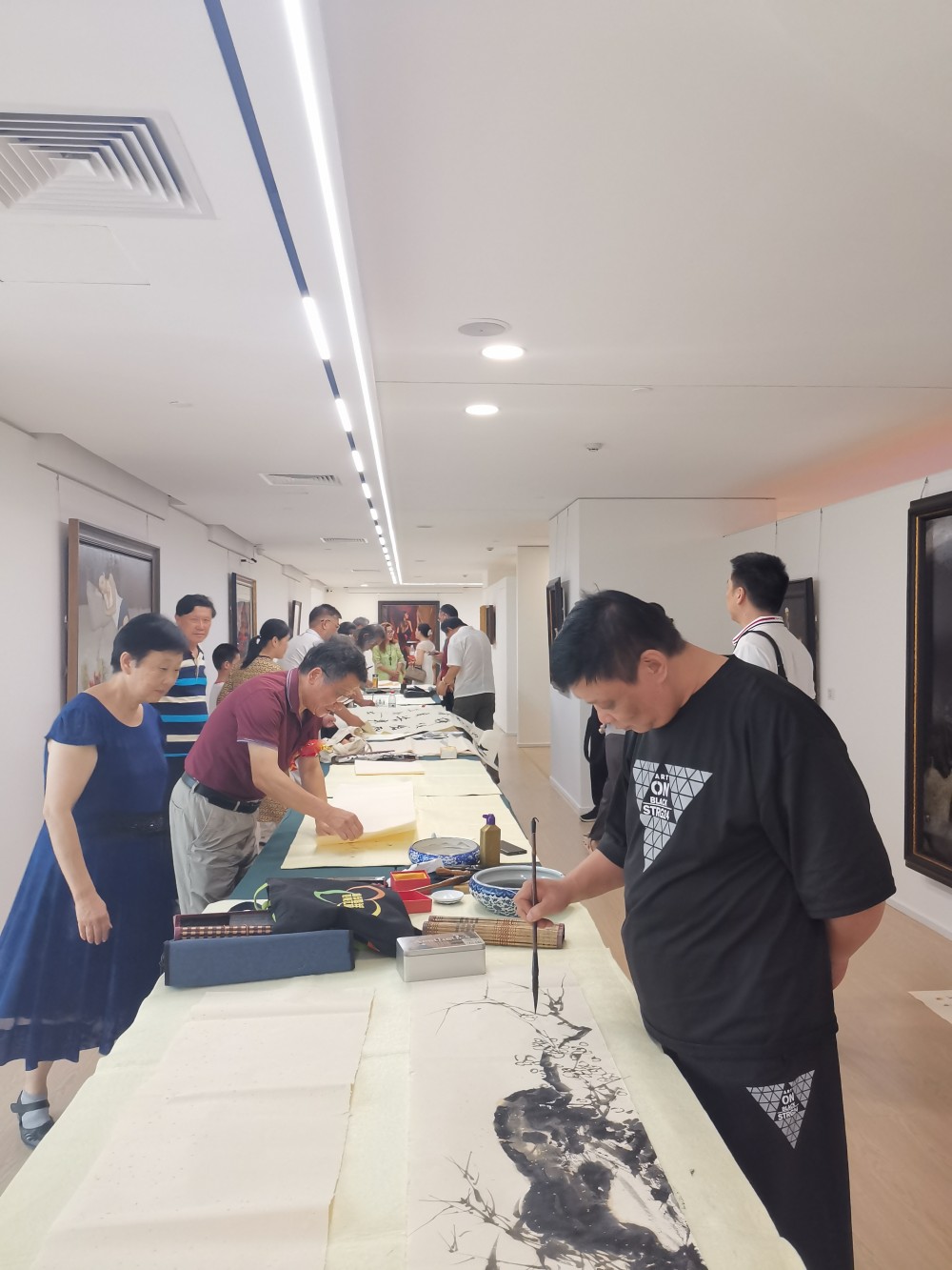 發(fā)布會(huì)上,活動(dòng)組委會(huì)秘書長(zhǎng)、《作家報(bào)》藝術(shù)世界專刊主編劉利剛宣讀了大展征稿啟事;啟動(dòng)儀式后,會(huì)議組織了與會(huì)書畫家,根據(jù)活動(dòng)組委會(huì)搜集整理的和文化資料,以及自己對(duì)和文化的認(rèn)同,揮毫潑墨、切磋交流,為大展留下了第一批墨寶。