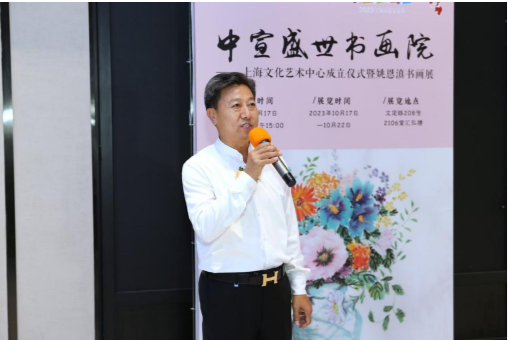 原中共中央直屬機關(guān)書畫協(xié)會副主席、中共中央編譯局書畫協(xié)會常務(wù)副主席兼秘書長張瑞祥宣布中宣盛世國際書畫院上海文化藝術(shù)中心成立儀式暨姚恩滇書畫展開幕