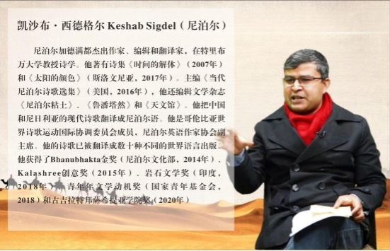 獲獎者尼泊爾英語作家協(xié)會副主席凱沙布·西德格爾發(fā)表獲獎感言: