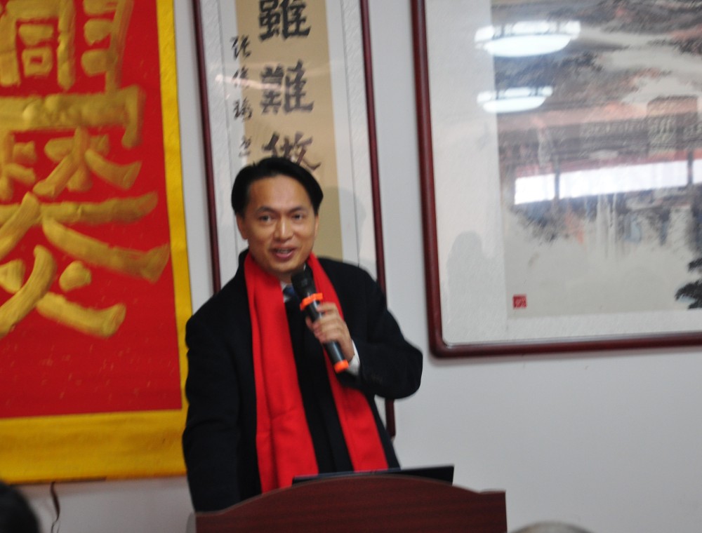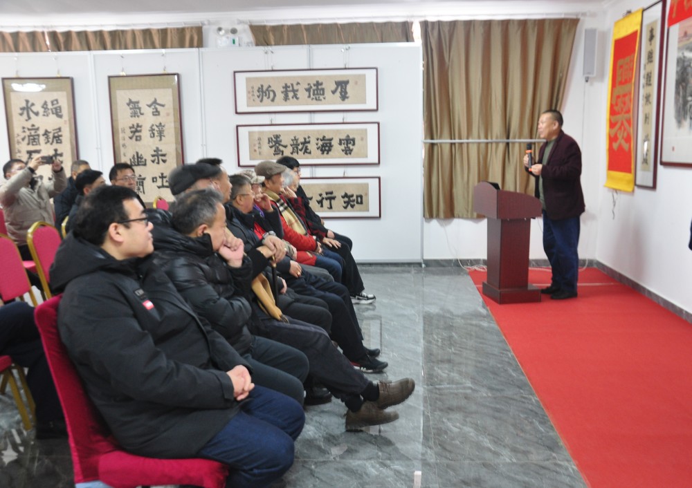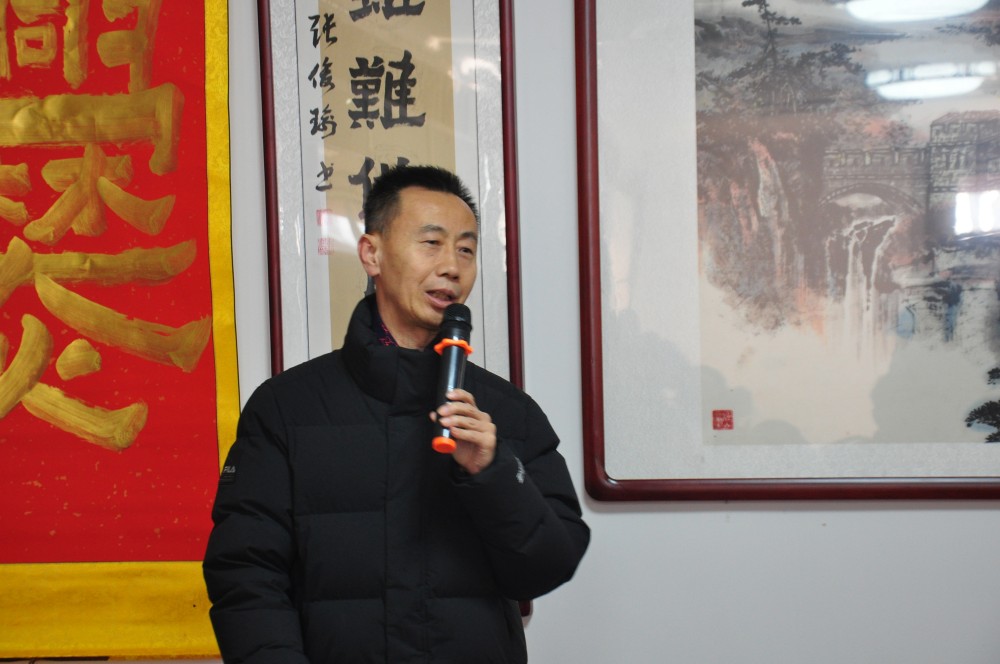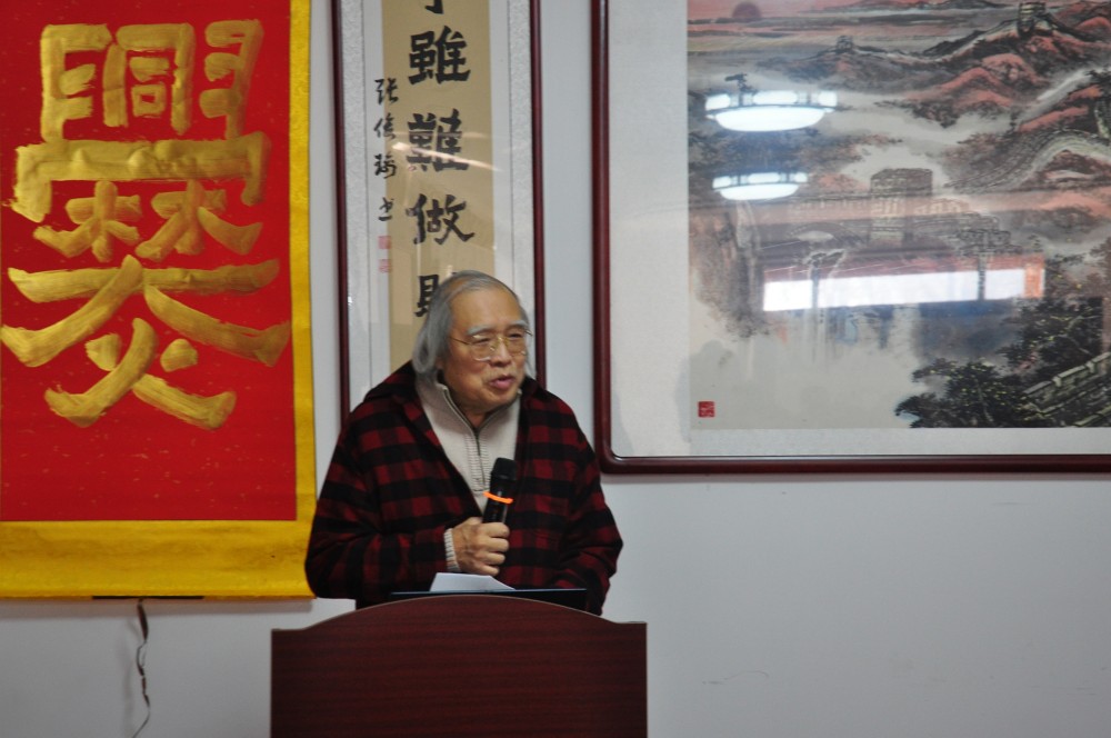 中國爨體書法研究院院長張俊瑜致歡迎辭后,廊坊市僑聯黨委書記兼主席王華、新加坡美術總會會長梁振康、韓國著名書法家和漢學家樸壽勛、固安縣文廣旅游局副局長史增尚、固安縣文聯主席張翼鵬、固安文史館主任孫東振、中國國畫院院長王宏江、北京奧宇集團董事長劉國恩、新加坡美術雜志總編輯李浪木先后發(fā)言,對中國爨體書法研究院院長張俊瑜在弘揚爨體書法藝術方面取得的成就都給予了充分肯定,特別是新加坡美術總會梁振康會長專門邀請張俊瑜與其恩師王勁華在今年4月到新加坡舉辦爨書與漢畫作品展,為爨體書法與新漢畫在國際上發(fā)揚光大搭建了橋梁。