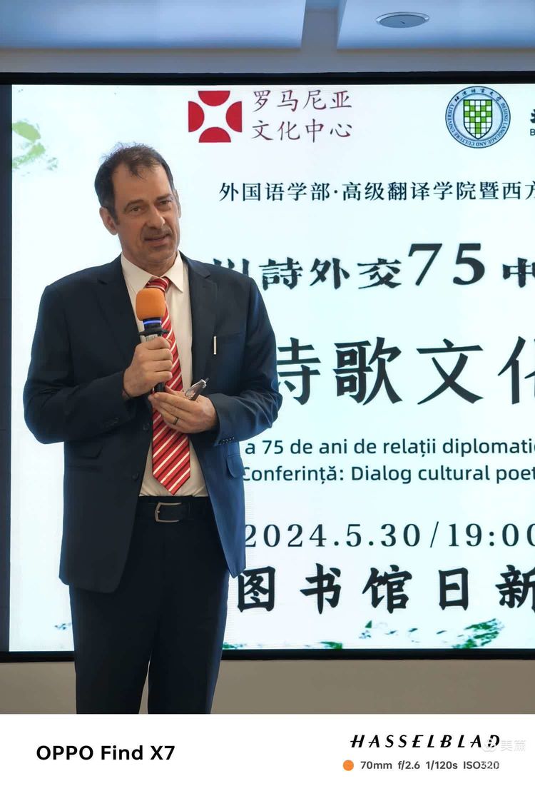 中羅詩(shī)歌文化交流會(huì)在北京豐富舉辦由北京語(yǔ)言大學(xué)外國(guó)語(yǔ)學(xué)部高級(jí)翻譯學(xué)院暨西方語(yǔ)言文化學(xué)院主辦、北京羅馬尼亞文化中心協(xié)辦的中羅詩(shī)歌文化交流會(huì)于2024年5月30日晚在北京語(yǔ)言大學(xué)圓滿舉辦。今年是中國(guó)和羅馬尼亞建交75周年,應(yīng)邀訪問(wèn)過(guò)羅馬尼亞的中國(guó)詩(shī)人北塔、戴濰娜、陳泰灸、趙劍華、黃吉韜、邵建國(guó)親臨活動(dòng)現(xiàn)場(chǎng)、回憶在羅所見(jiàn)所聞,與學(xué)生們分享了羅馬尼亞的文化藝術(shù)氛圍和地域特色以及他們的詩(shī)作。也曾應(yīng)邀訪問(wèn)過(guò)羅馬尼亞的中國(guó)詩(shī)人藍(lán)藍(lán)、王桂林、王家新、祁人等提交了訪羅期間寫(xiě)下的詩(shī)作,由北語(yǔ)學(xué)生代為誦讀。羅馬尼亞駐華使館文化參贊克勞狄烏·弗洛里安先生及其夫人、北京羅馬尼亞文化中心主任利維烏·策拉努先生出席活動(dòng)并發(fā)表講話。羅馬尼亞資深外交官維奧雷爾·伊斯提喬亞-布杜拉先生出席活動(dòng)并致辭。參與本次交流會(huì)的為來(lái)自北京語(yǔ)言大學(xué)、北京外國(guó)語(yǔ)大學(xué)等高校師生。交流會(huì)伊始,羅語(yǔ)專業(yè)教師劉祎哲主持活動(dòng)。她感謝在惡劣天氣下依然風(fēng)雨無(wú)阻來(lái)到現(xiàn)場(chǎng)的各位詩(shī)友與同仁,并誠(chéng)摯地歡迎各位詩(shī)人朋友們參與本次交流會(huì),并前來(lái)分享在羅游歷間的所見(jiàn)所聞。她強(qiáng)調(diào),本次活動(dòng)將帶領(lǐng)聽(tīng)眾欣賞到中、羅兩種語(yǔ)言創(chuàng)作的雙邊詩(shī)人詩(shī)作,感受它們獨(dú)特的韻律美和深刻的情感力量。隨后,北京語(yǔ)言大學(xué)外國(guó)語(yǔ)學(xué)部穆楊教授為活動(dòng)致辭。她強(qiáng)調(diào),詩(shī)歌是人類(lèi)最高尚的藝術(shù)形式之一,作為文化載體,它顯示出一個(gè)文明海納百川、有容乃大的包容力,架起不同國(guó)家和民族之間的橋梁。通過(guò)本次詩(shī)會(huì),她希望中羅兩國(guó)的學(xué)生們將有機(jī)會(huì)一睹彼此國(guó)家的詩(shī)歌風(fēng)采,增進(jìn)對(duì)彼此文化的了解和欣賞。伊斯提喬亞-布杜拉(Viorel Isticioaia)大使先生曾擔(dān)任羅馬尼亞駐中華人民共和國(guó)、蒙古及韓國(guó)的大使,任歐洲對(duì)外行動(dòng)署(SEAE)亞太事務(wù)部的主任,這是羅馬尼亞外交官在歐盟委員會(huì)中擔(dān)任的最高職位。他和他的妻子塔蒂亞娜·伊斯提喬亞-布杜拉都是外交官和漢學(xué)家,他們?cè)谥袊?guó)長(zhǎng)期學(xué)習(xí)和工作,致力于推動(dòng)羅馬尼亞與中國(guó)之間關(guān)系的緊密聯(lián)系與持久發(fā)展。在致辭時(shí),伊斯提喬亞使用極為流利的漢語(yǔ)表達(dá)了自己參加詩(shī)歌交流會(huì)、沐浴在詩(shī)歌文化潤(rùn)澤中的欣悅之情,并肯定活動(dòng)對(duì)促進(jìn)雙邊詩(shī)歌文化熱誠(chéng)交流的重要意義。羅馬尼亞駐華使館文化參贊、作家、詩(shī)人克勞狄烏·弗洛里安(Claudiu Florian)在致辭中感謝伊斯提喬亞大使先生以線上形式蒞臨活動(dòng),并表達(dá)了自己對(duì)文化交流會(huì)的期待之情,他強(qiáng)調(diào),詩(shī)歌作為一種重要的文化形式,是雙邊文化交流的重要橋梁,并且真誠(chéng)地希望中羅兩國(guó)人民以詩(shī)歌為引信、以文化為媒介,使友誼之樹(shù)長(zhǎng)青。北京-羅馬尼亞文化中心主任利維烏·策拉努(Liviu Taranu)則致謝北京語(yǔ)言大學(xué)對(duì)于活動(dòng)舉辦的支持,他尤其感謝北京語(yǔ)言大學(xué)以其開(kāi)放、包容的態(tài)度舉辦裨益兩國(guó)文化交往的數(shù)個(gè)雙邊文化活動(dòng),他希望能夠在更多主題與領(lǐng)域共同探索,進(jìn)一步深化合作交流。活動(dòng)現(xiàn)場(chǎng)播放了羅馬尼亞詩(shī)人、《詩(shī)歌》雜志主編喬治·武爾圖雷斯庫(kù)(George Vulturescu)先生及中國(guó)詩(shī)人、上海市作家協(xié)會(huì)副主席趙麗宏先生對(duì)此次活動(dòng)發(fā)來(lái)的賀電及視頻,他們無(wú)不表達(dá)了對(duì)交流會(huì)的重視與期待。