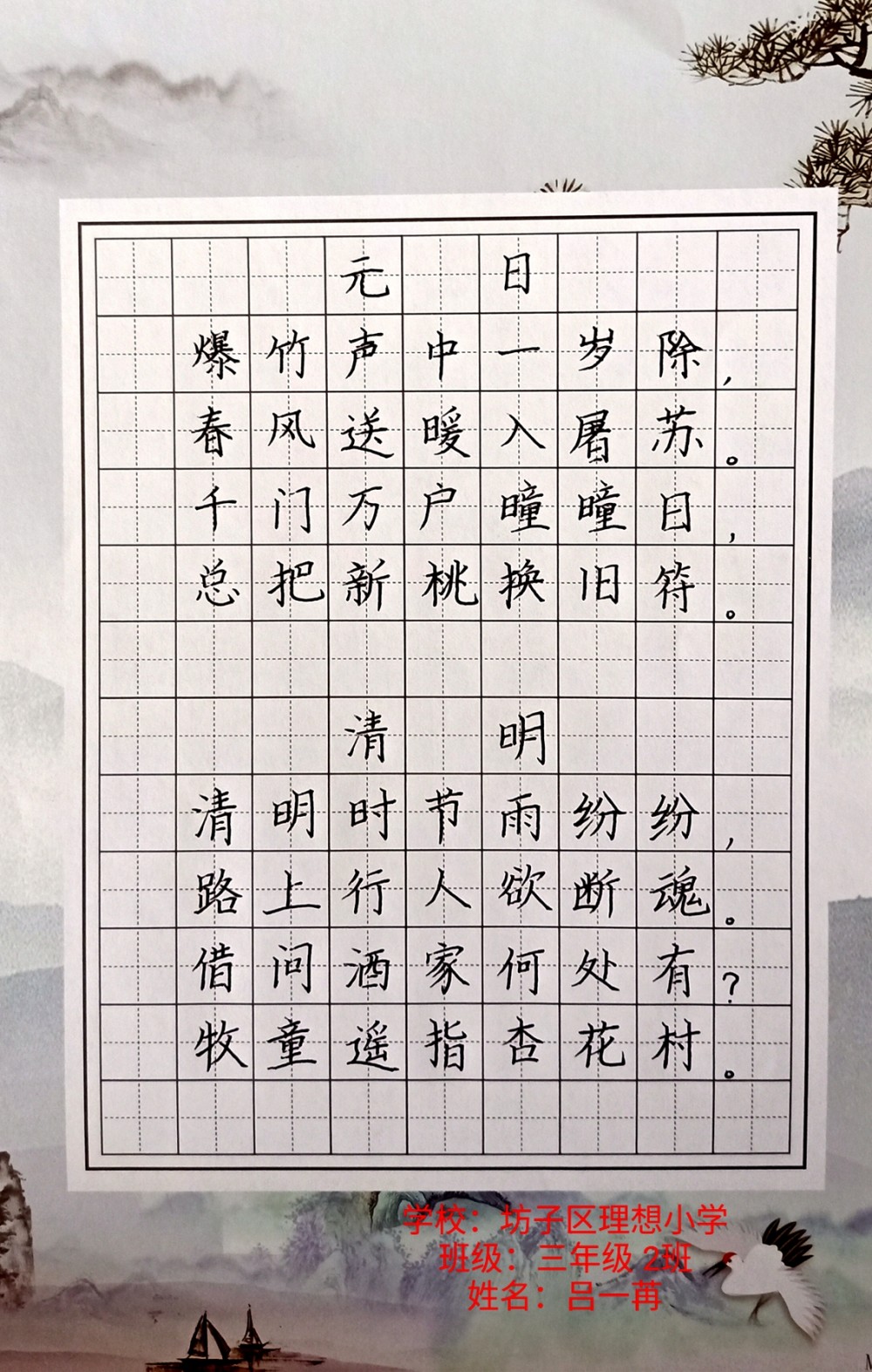山東省濰坊市坊子區(qū)理想小學(xué)三年級(jí)(2)班 呂一苒