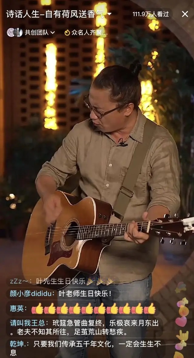 那天在活動現(xiàn)場,陳涌海唱了兩首詩詞:除了《將進酒》,還有李商隱的《錦瑟》。正式演出前,負責(zé)和嘉賓對接的閆曉錚與陳涌海商量要演唱的詩詞篇目,這位科學(xué)家準(zhǔn)備得很認真,把自己演唱過、相對熟悉的曲目拉出單子發(fā)了過來。“除了這兩首,我記得還有《行行重行行》和幾首樂府詩。”閆曉錚回憶,他們根據(jù)活動的主題和氛圍,很快商定了曲目,“《錦瑟》是格律比較規(guī)整的近體詩,還有葉先生的讀誦音頻可以配合播放;《將進酒》是散體詩,詩句比較參差,篇幅更長。”他們都覺得考慮到表演的時長和豐富性,演唱這兩首曲目是比較合適的。