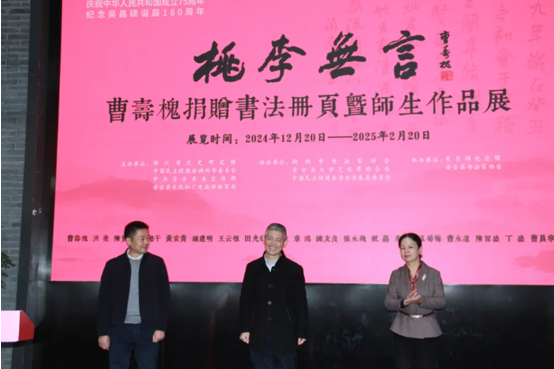 本網(wǎng)訊 為紀(jì)念吳昌碩誕辰180周年,彰顯安吉深厚人文底蘊(yùn),12月20日,“桃李無言——曹壽槐捐贈(zèng)書法冊(cè)頁暨師生作品展”在吳昌碩紀(jì)念館開幕。展覽時(shí)間: 2024年12月20日—2025年2月20日。展覽地點(diǎn):浙江省安吉縣吳昌碩紀(jì)念館一樓特展廳。