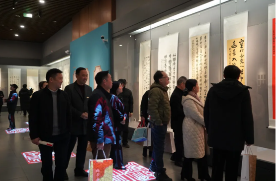 參加開幕式的領(lǐng)導(dǎo)和嘉賓有浙江省文史研究館副館長成明權(quán),湖州市政協(xié)副主席、民進(jìn)湖州市委會(huì)主委李紅,安吉縣政協(xié)副主席、民進(jìn)湖州市委會(huì)副主委陳衛(wèi)衛(wèi),民進(jìn)安吉縣基層委主委、縣供銷社主任陳飛飛,湖州市書法家協(xié)會(huì)主席范斌,安吉縣文體旅游局副局長潘黎明,安吉縣文聯(lián)專職副主席丁盛,湖州市書協(xié)副主席、吳興區(qū)書協(xié)主席胡迪權(quán),吳昌碩紀(jì)念館館長胡建華,安吉縣博物館館長黃衛(wèi)琴,安吉縣圖書館副館長蘭瀾,湖州市書協(xié)副主席、安吉縣書協(xié)主席祝嚞,安吉縣書協(xié)名譽(yù)主席董才寶,還有本次參展的曹老的學(xué)生弟子和藝術(shù)家們。
