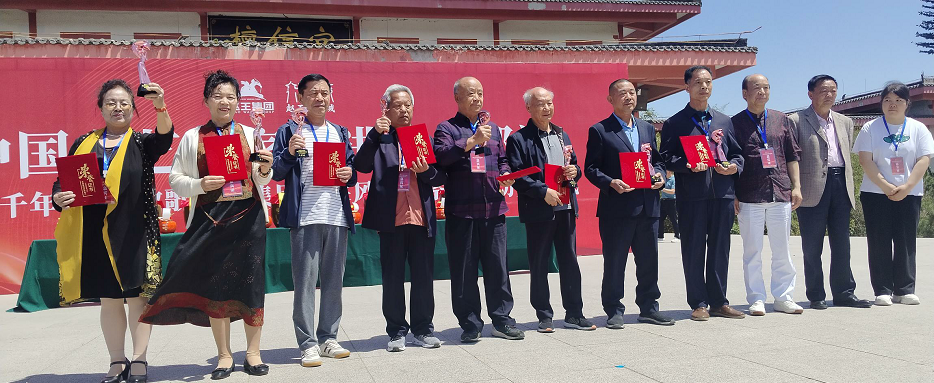 總編葉建華書記、凌鼎年會長分別致詞。開幕式上,大會組委會向趙王集團授中國作家新創(chuàng)作論壇趙王集團創(chuàng)作基地牌匾。崔根峰將軍、楊明、練友良、馬華松、曹俊海、趙明振等書法家向大會贈送賀詞,主辦方向趙王集團贈送圖書、墨寶。