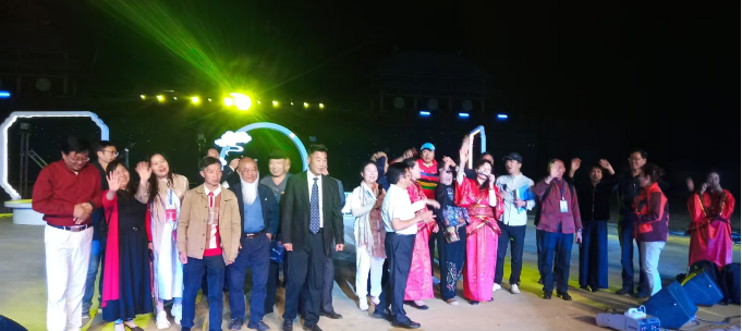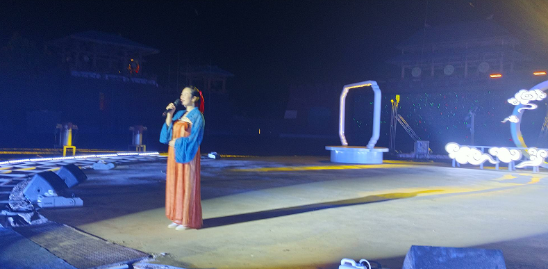 17日晚,與會的文學(xué)藝術(shù)家們在趙王不夜城舉辦了文藝聯(lián)歡晚會,晚會由《作家報》首席編委冰耘主持。來自內(nèi)蒙古阿拉善左旗的文藝家代表團和本溪市老年大學(xué)古詩班師生代表團以及山東、甘肅、河南、貴州等地的藝術(shù)家們?yōu)榇蠹耀I上精彩演出。