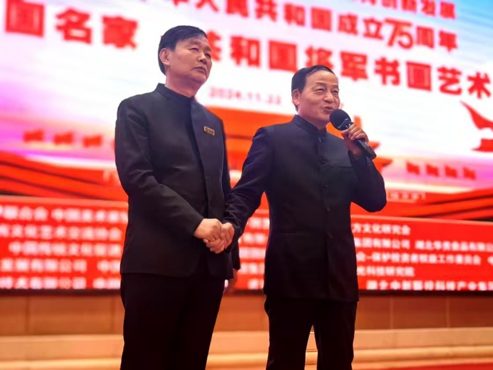 祝天華先生主導(dǎo)籌備的(2018年)“慶祝建國(guó)75周年·中國(guó)名家·共和國(guó)將軍書(shū)畫(huà)藝術(shù)展”,組建包含28位書(shū)畫(huà)家和9位將軍的專(zhuān)業(yè)團(tuán)隊(duì),首創(chuàng)“將軍+名家”雙軌模式,強(qiáng)化了軍地文化融合的標(biāo)桿效應(yīng)。