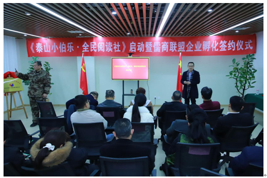 黨建引領(lǐng),核心帶動(dòng),紅色文化傳播,《泰山小伯樂(lè)·全民閱讀社》不斷舉辦公益活動(dòng),如:不斷組織閱讀愛(ài)好者走進(jìn)攻濟(jì)打援指揮部泰安市寧陽(yáng)縣千年古集大伯集村---粟裕大將軍文化廣場(chǎng)舉行紅色閱讀,《跟著孔子去旅行》全國(guó)志愿者文化閱讀創(chuàng)業(yè)沙龍,軍創(chuàng)服務(wù)社·趵小鮮精釀啤酒小屋,人民咖啡屋,走進(jìn)“一山一水一圣人”泰山老湯雞研學(xué)基地、肥城邊院森輝研學(xué)基地等。