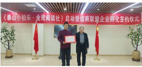 本網(wǎng)訊 (《作家報(bào)》記者李法明特約記者趙玉棟 劉建報(bào)道)為貫徹落實(shí)國(guó)務(wù)院第73次常務(wù)會(huì)議頒布的《全民閱讀促進(jìn)條例》于2026年2月1日起施行,條例施行當(dāng)天由山東小伯樂(lè)文化傳媒有限公司、濟(jì)南市閱讀協(xié)會(huì)、山東省現(xiàn)代體驗(yàn)經(jīng)濟(jì)研究院主辦,濟(jì)南中泰和文化科技有限公司負(fù)責(zé)承辦的“泰山小伯樂(lè)·全民閱讀社”文化活動(dòng)在泉城濟(jì)南啟動(dòng)。