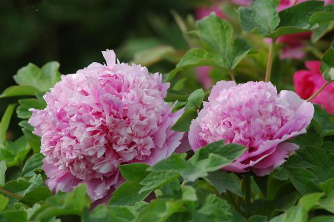瞧,這兒一片似火的嬌紅,那兒一叢貴氣逼人的雅紫;正想在一簇冷艷素白間停駐,那邊一團(tuán)搖曳心池的淡粉又傲然閃了出來。驀地,一串串粉嫩剔透的小荷包令我身心一顫。荷包牡丹?我自問自答,在心中深深地感嘆起造物主的神奇,這些美到極致的荷包猶如眨著美眸的小精靈,優(yōu)雅別致地綻放在飽滿豐碩的花朵間,使華麗的牡丹園更加流光溢彩。