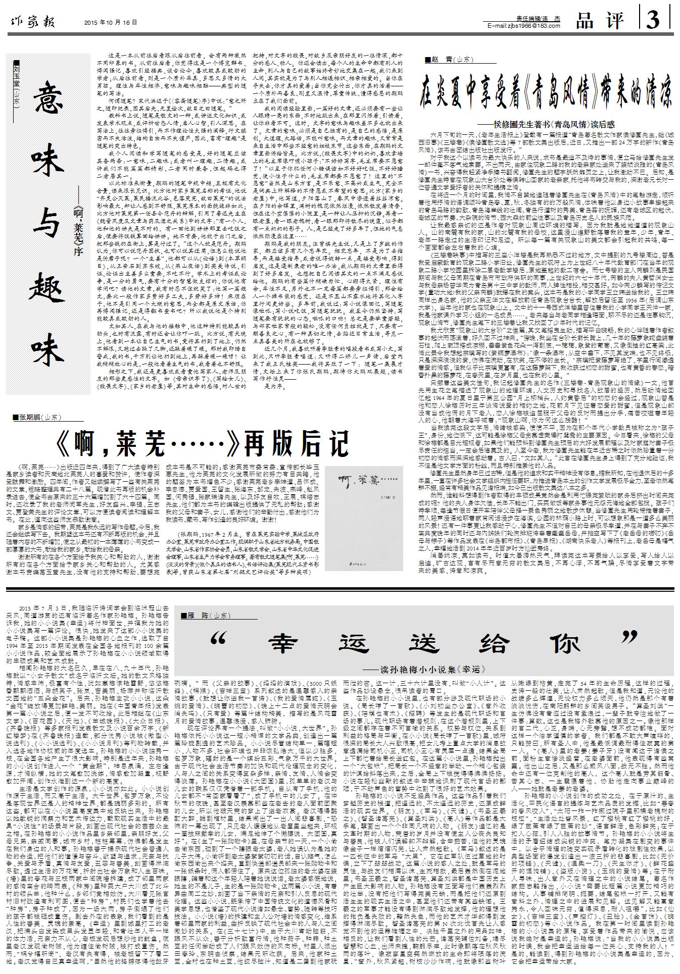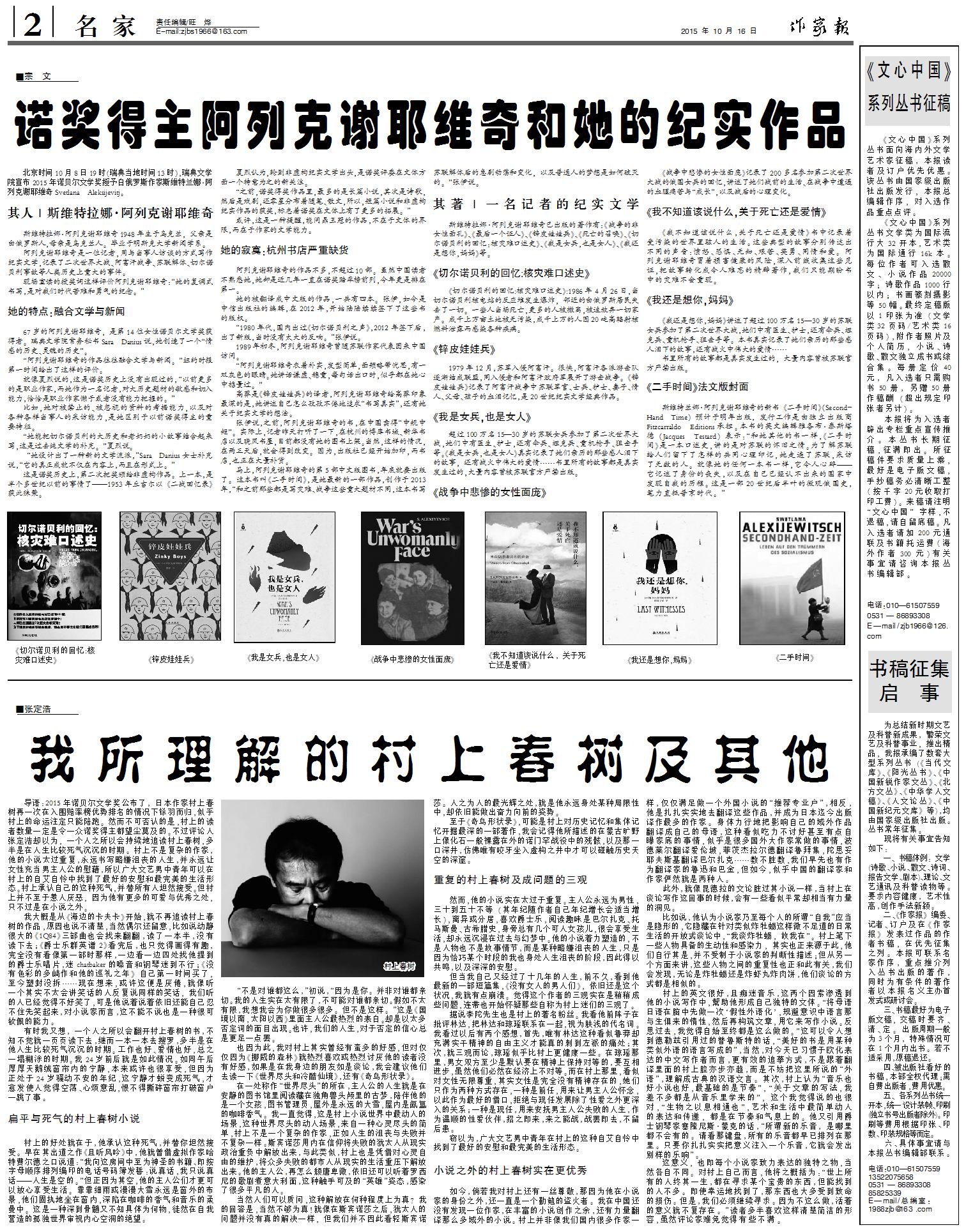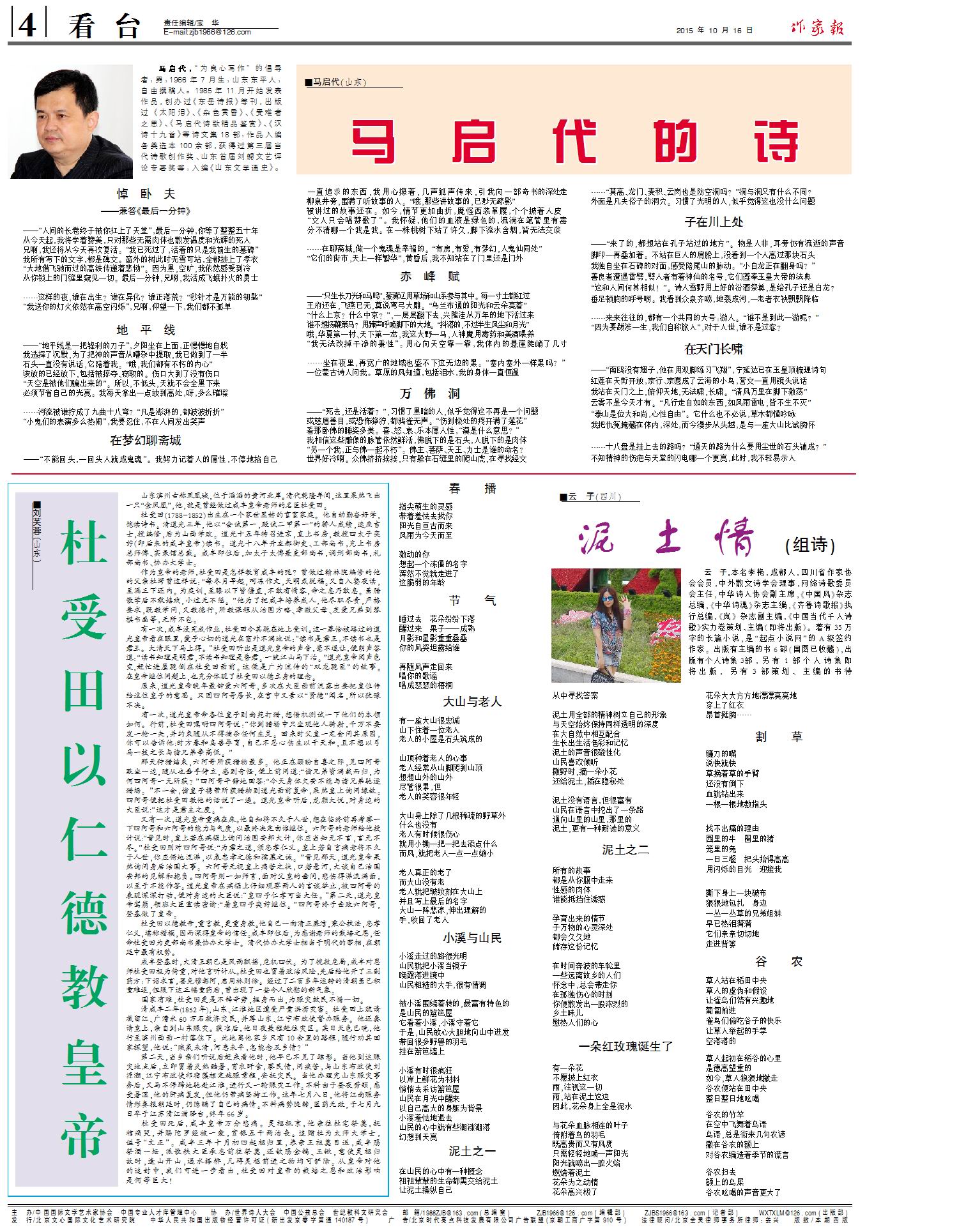 10月16日 《作家報》出版,訂閱季開始,歡迎訂閱、合作! 2015-10-16 未知國際華文作家網(wǎng) 免責聲明:文章內(nèi)容不代表華文作家網(wǎng)_作家報立場,華文作家網(wǎng)_作家報不對其內(nèi)容的真實性、完整性、準確性給予任何擔保、暗示和承諾,僅供讀者參考,文章版權歸原作者所有。如本文內(nèi)容影響到您的合法權益(內(nèi)容、圖片等),請及時聯(lián)系華文作家網(wǎng)_作家報,我們會及時刪除處理。