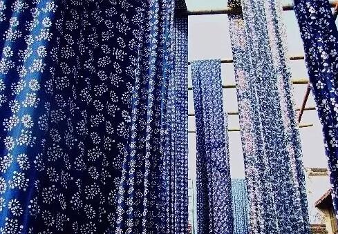沿岸窗口掛著的藍印花布