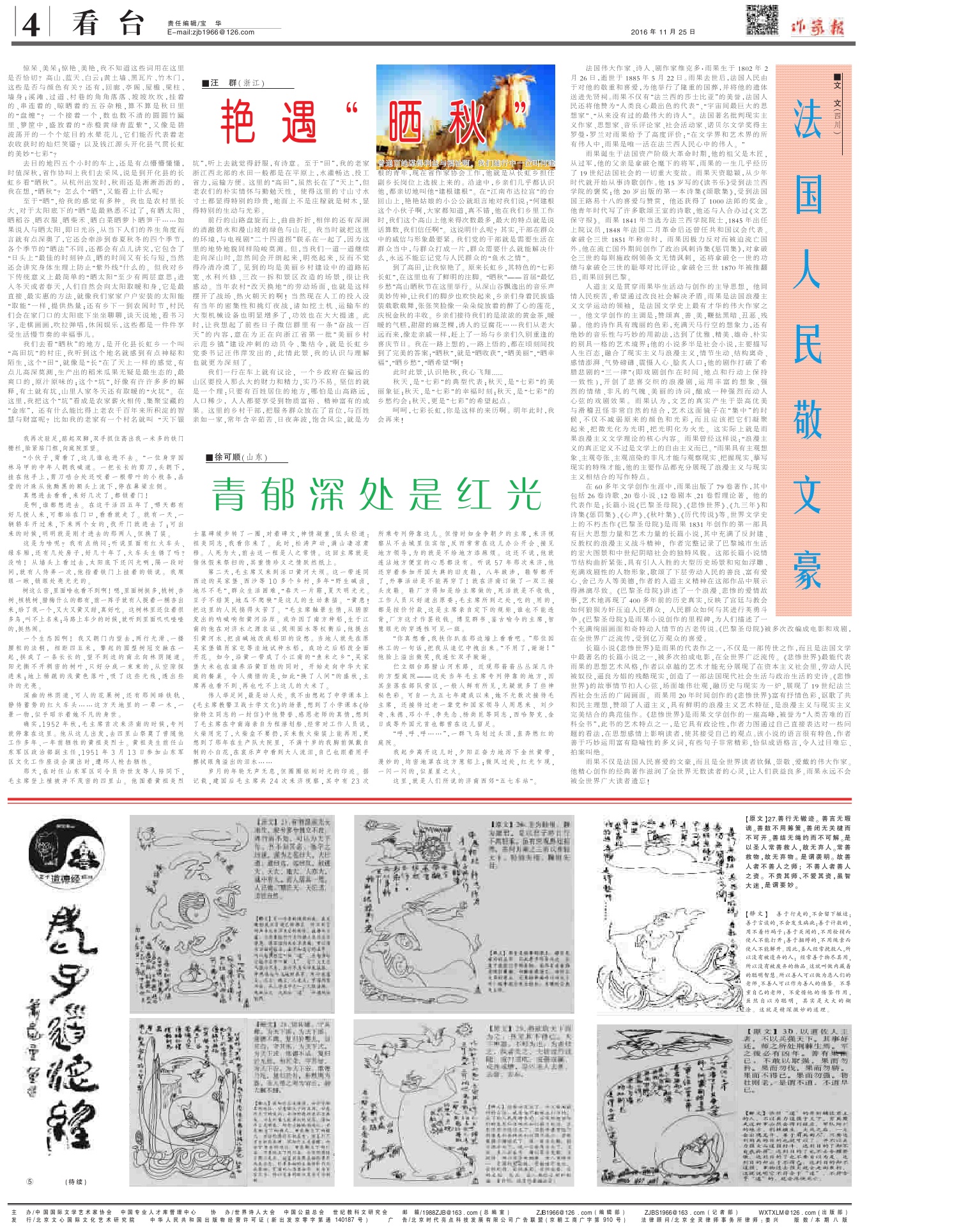 作家報最新期2016年11月25日(4)版 2016-11-23 作家報國際華文作家網(wǎng) 核心提示:作家報最新期2016年11月25日(4)版 免責(zé)聲明:文章內(nèi)容不代表華文作家網(wǎng)_作家報立場,華文作家網(wǎng)_作家報不對其內(nèi)容的真實性、完整性、準確性給予任何擔(dān)保、暗示和承諾,僅供讀者參考,文章版權(quán)歸原作者所有。如本文內(nèi)容影響到您的合法權(quán)益(內(nèi)容、圖片等),請及時聯(lián)系華文作家網(wǎng)_作家報,我們會及時刪除處理。