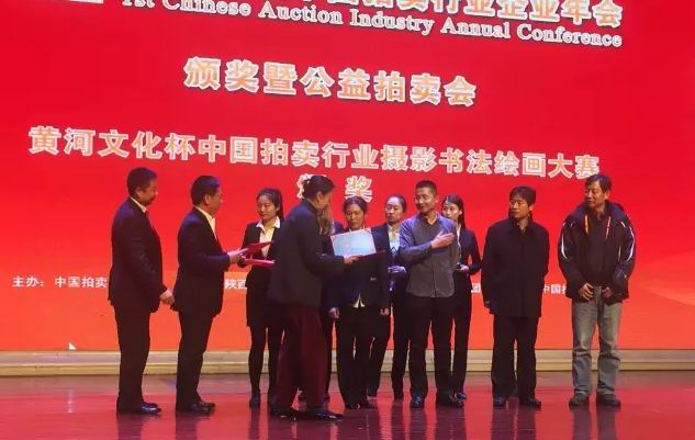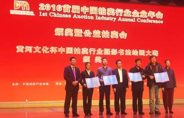 27日晚,在中國拍賣行業(yè)企業(yè)年會頒獎及公益拍賣晚會上,黃河文化杯中國拍賣行業(yè)攝影書法繪畫大賽頒獎儀式成功舉辦,黃河文化董事長李康為金獎獲得者頒獎。